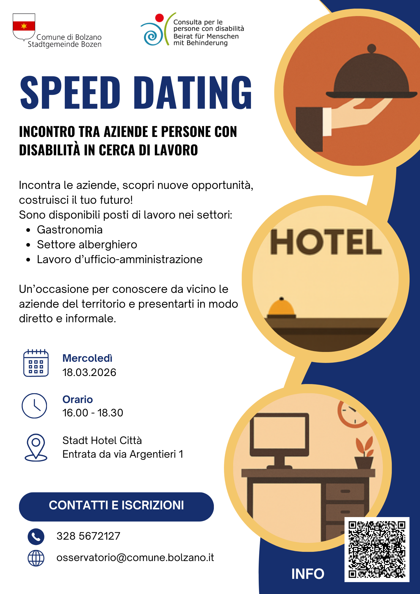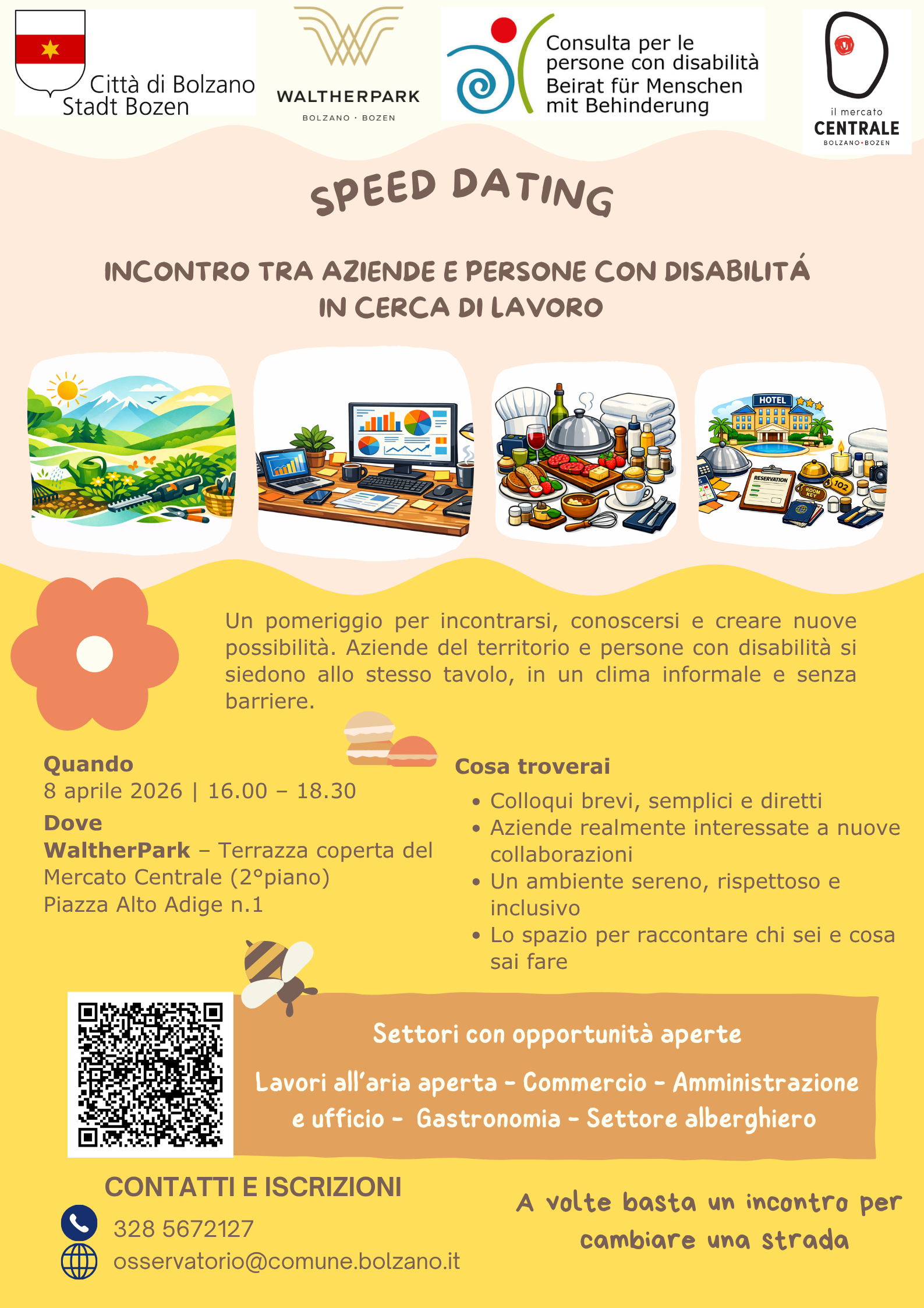 A questo scopo è previsto un evento di avvio della serie "Speed dating tra imprese e persone con disabilità senza occupazione".