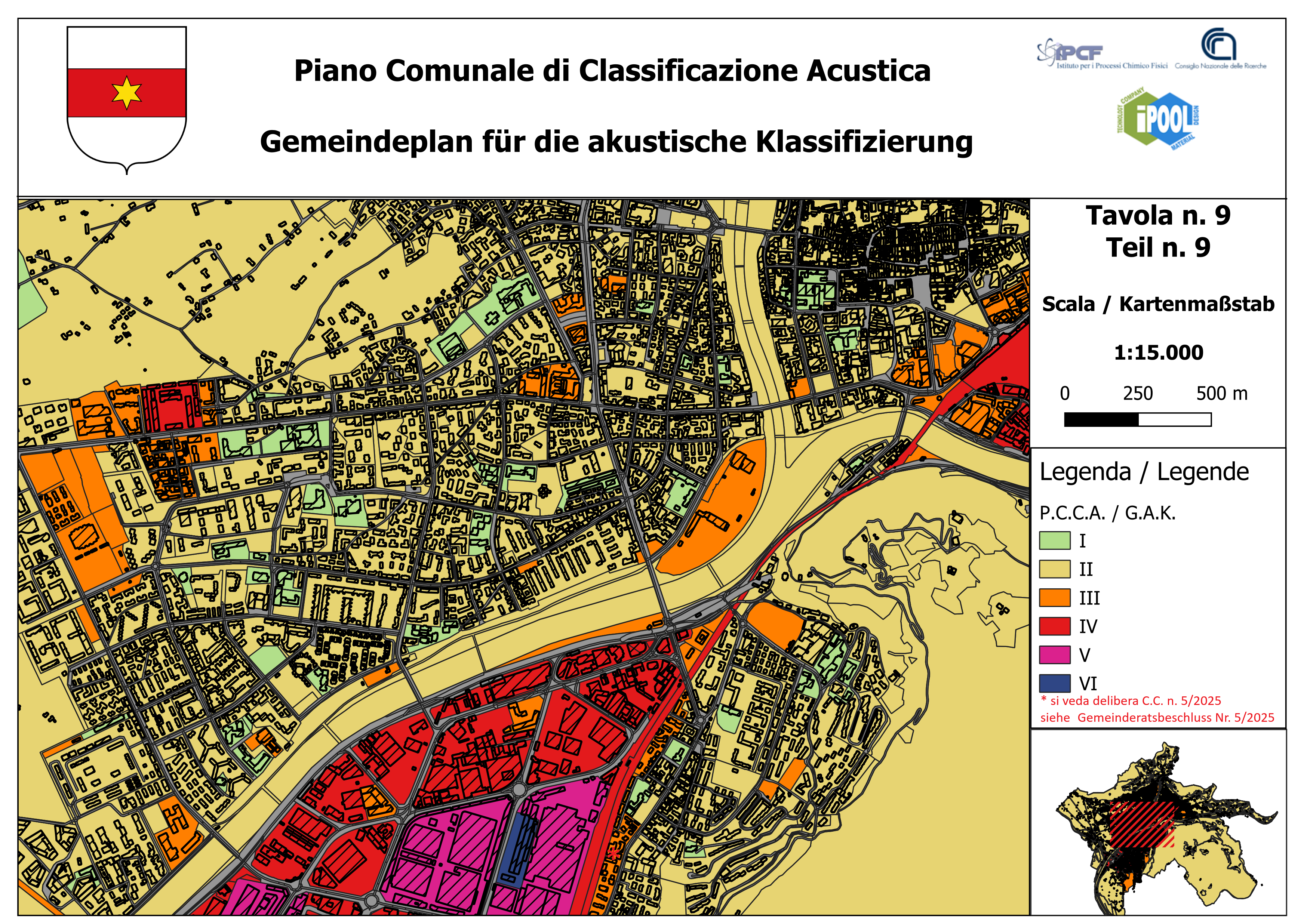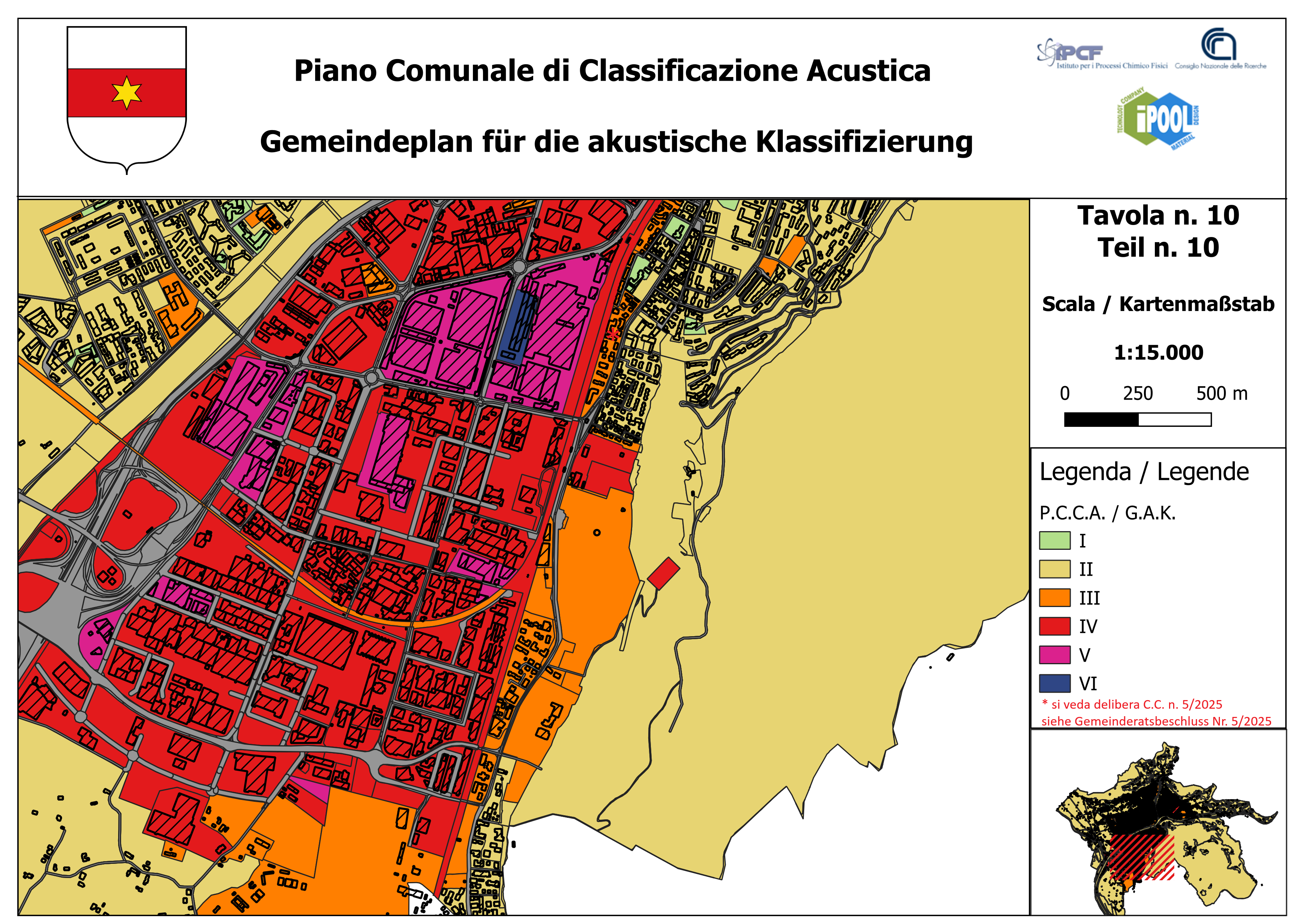 In allegato é disponibile il Piano comunale di classificazione acustica (P.C.C.A.) del Comune di Bolzano, redatto ai sensi della L.P. 5 dicembre 2012, n. 20 e approvato con deliberazione del Consiglio Comunale n. 5 dd. 30.01.2025.