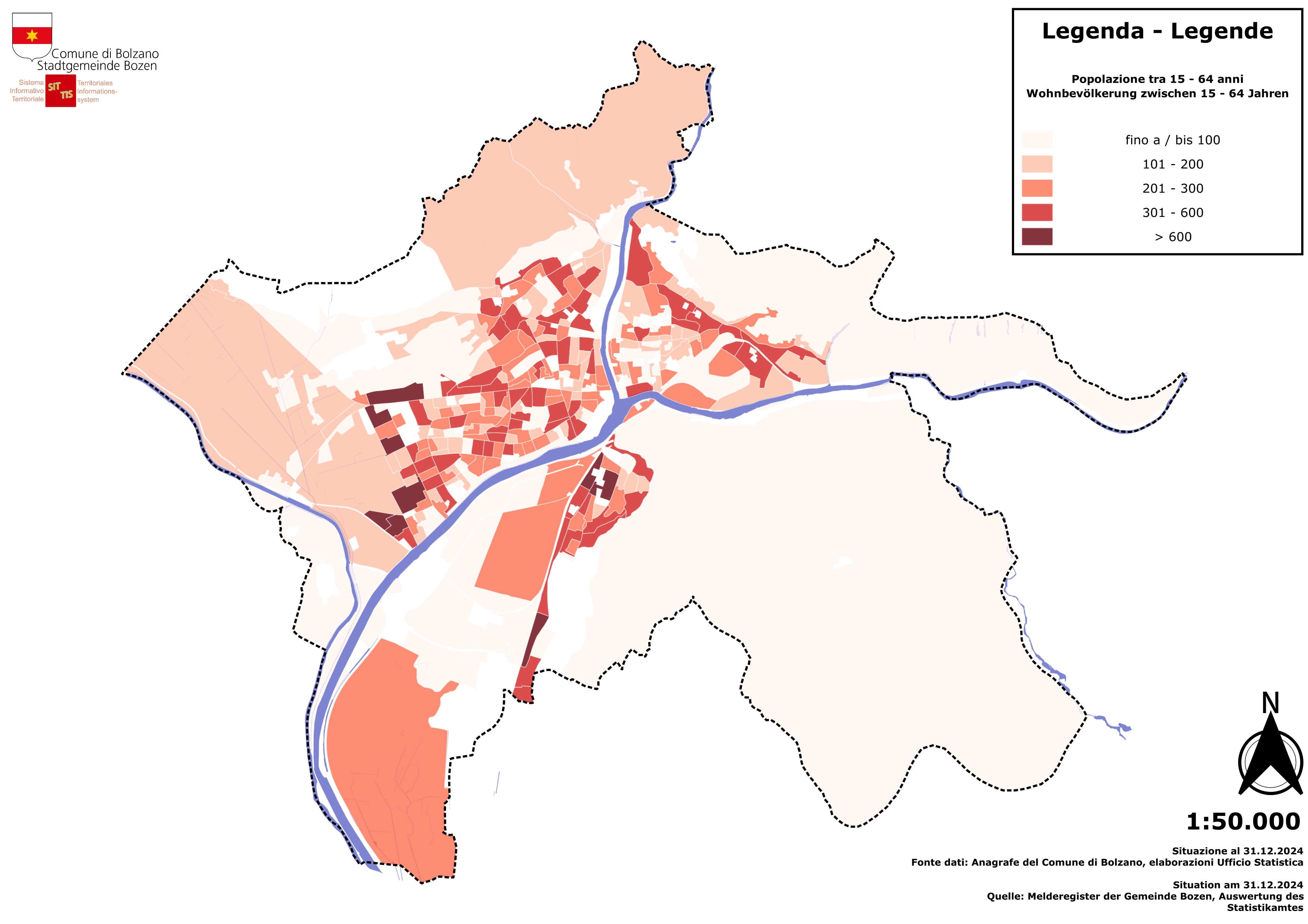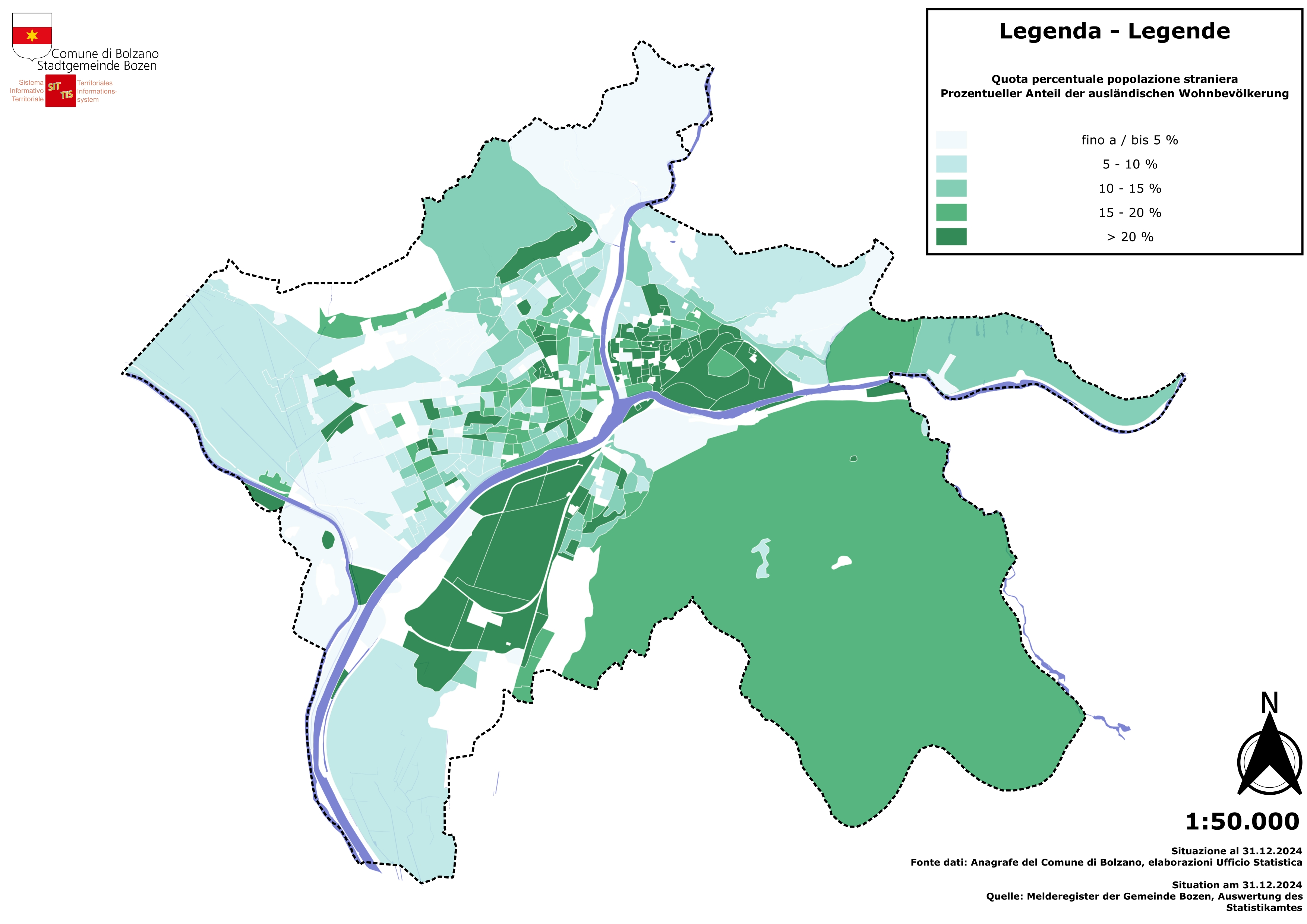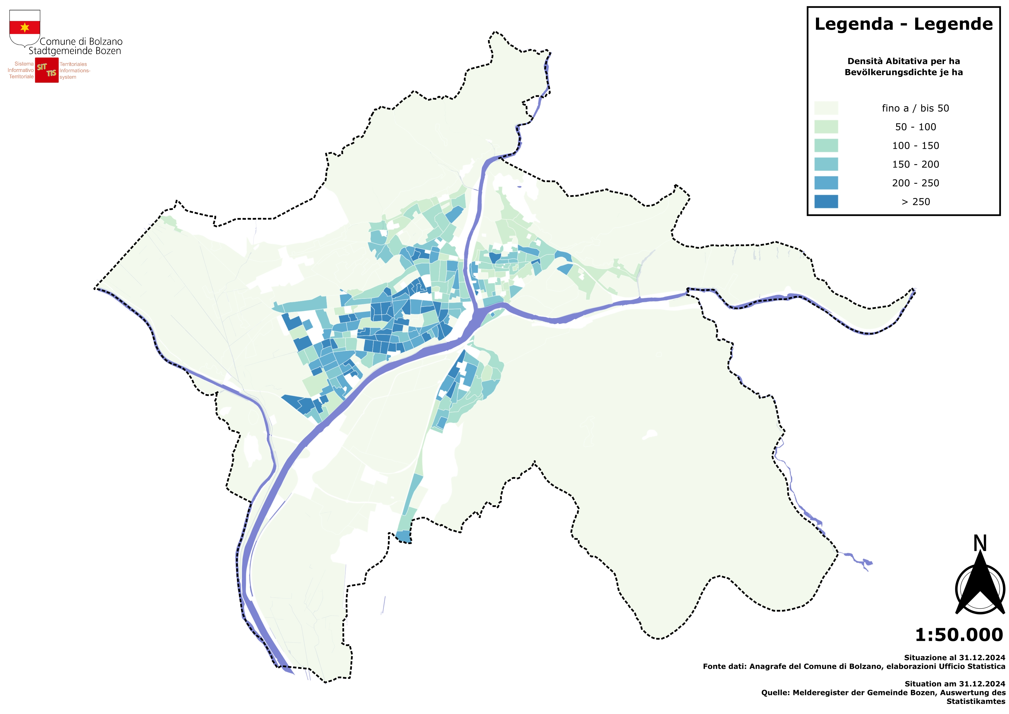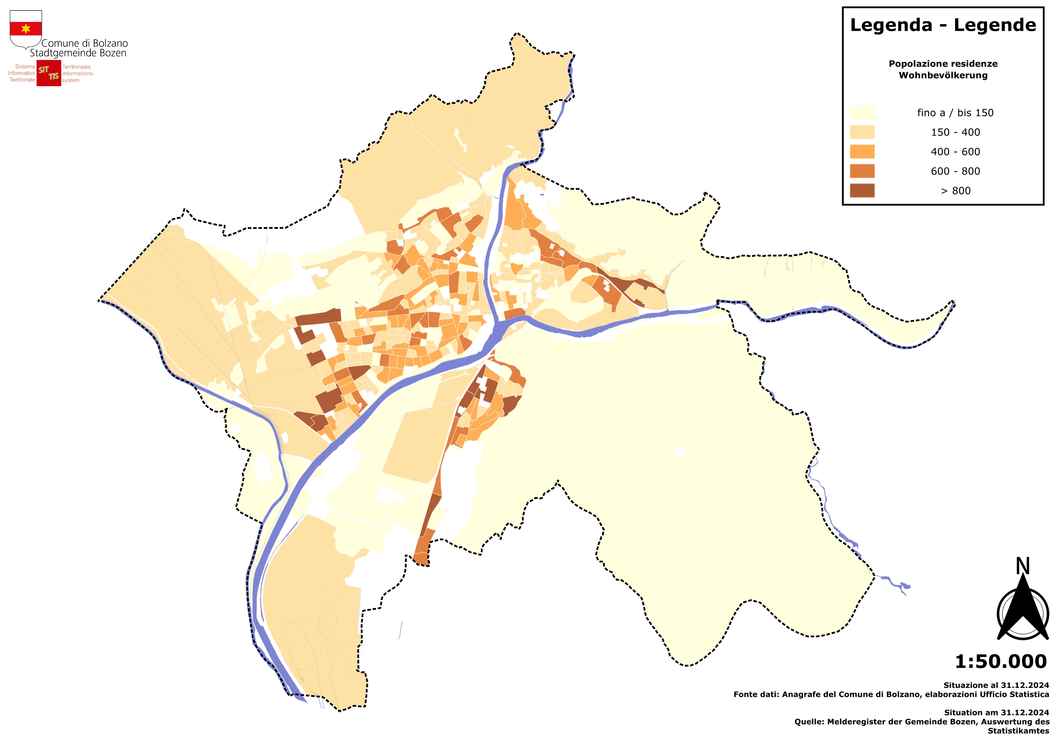 Annualmente poi, l'Ufficio Statistica e Tempi della Città provvede ad elaborare un'analisi approfondita e dettagliata per singoli aspetti e profili, della composizione e dell'evoluzione demografica di Bolzano. Questo lavoro viene pubblicato ogni primavera con il titolo "Andamento e struttura della popolazione di Bolzano e dei suoi quartieri".