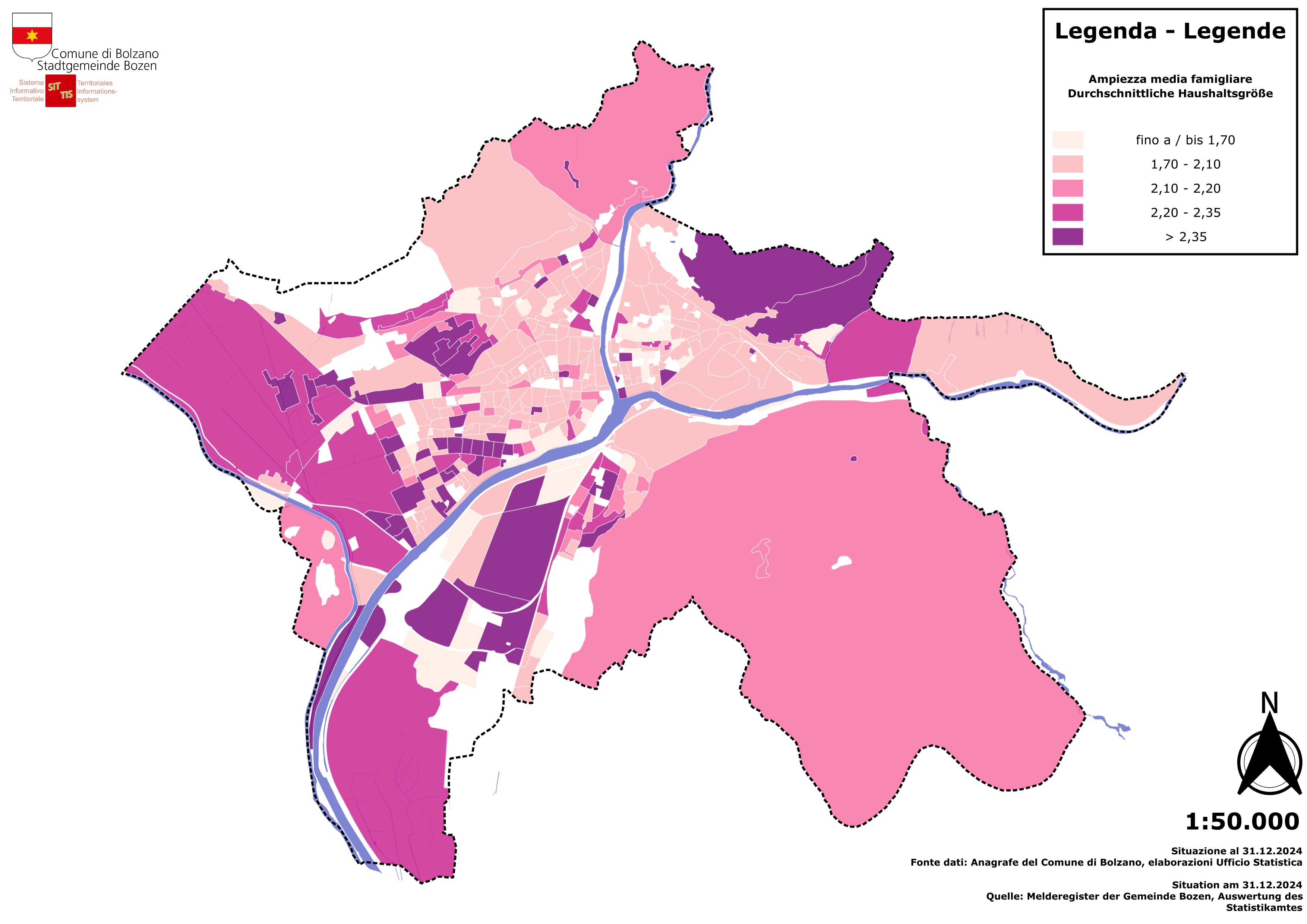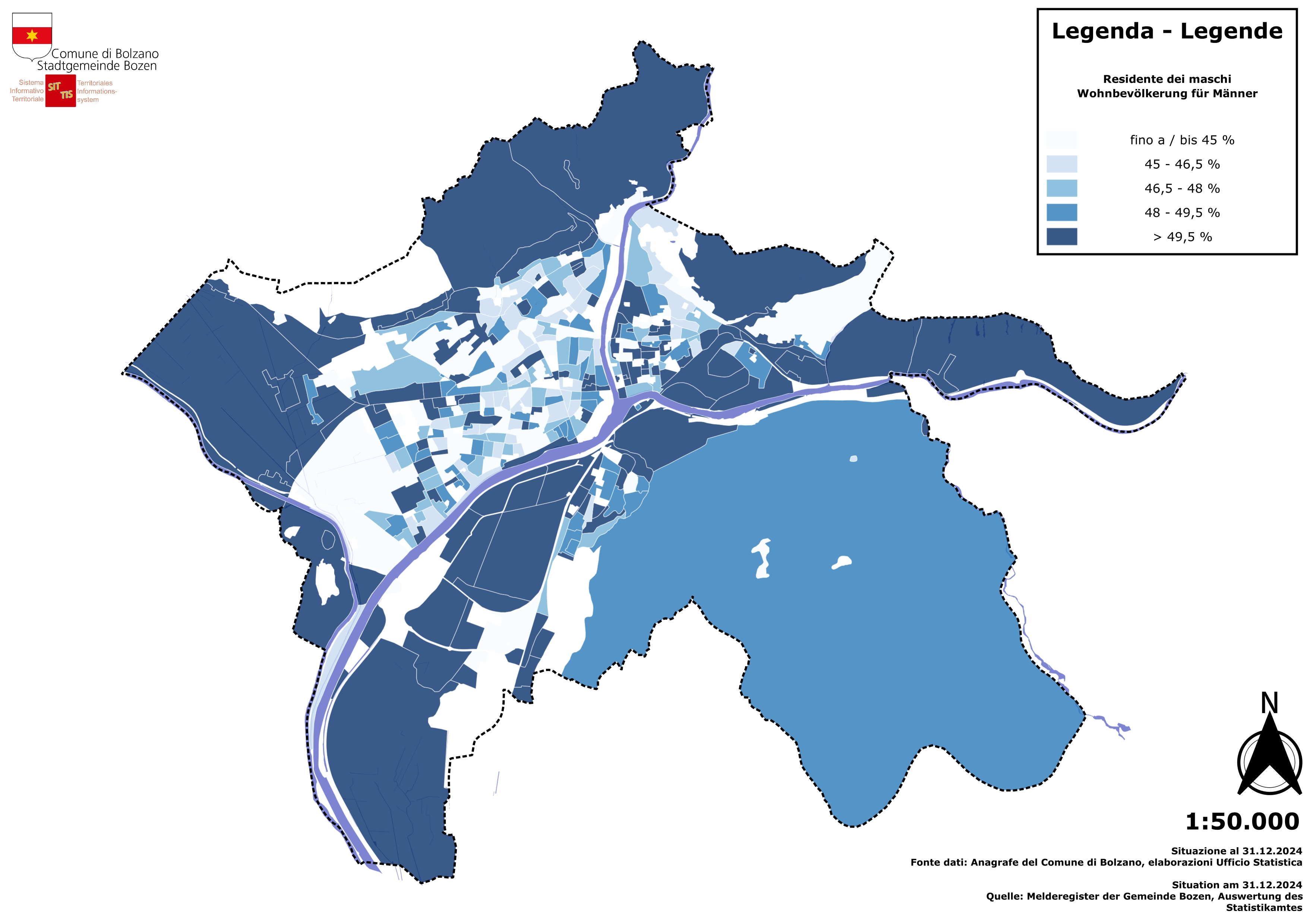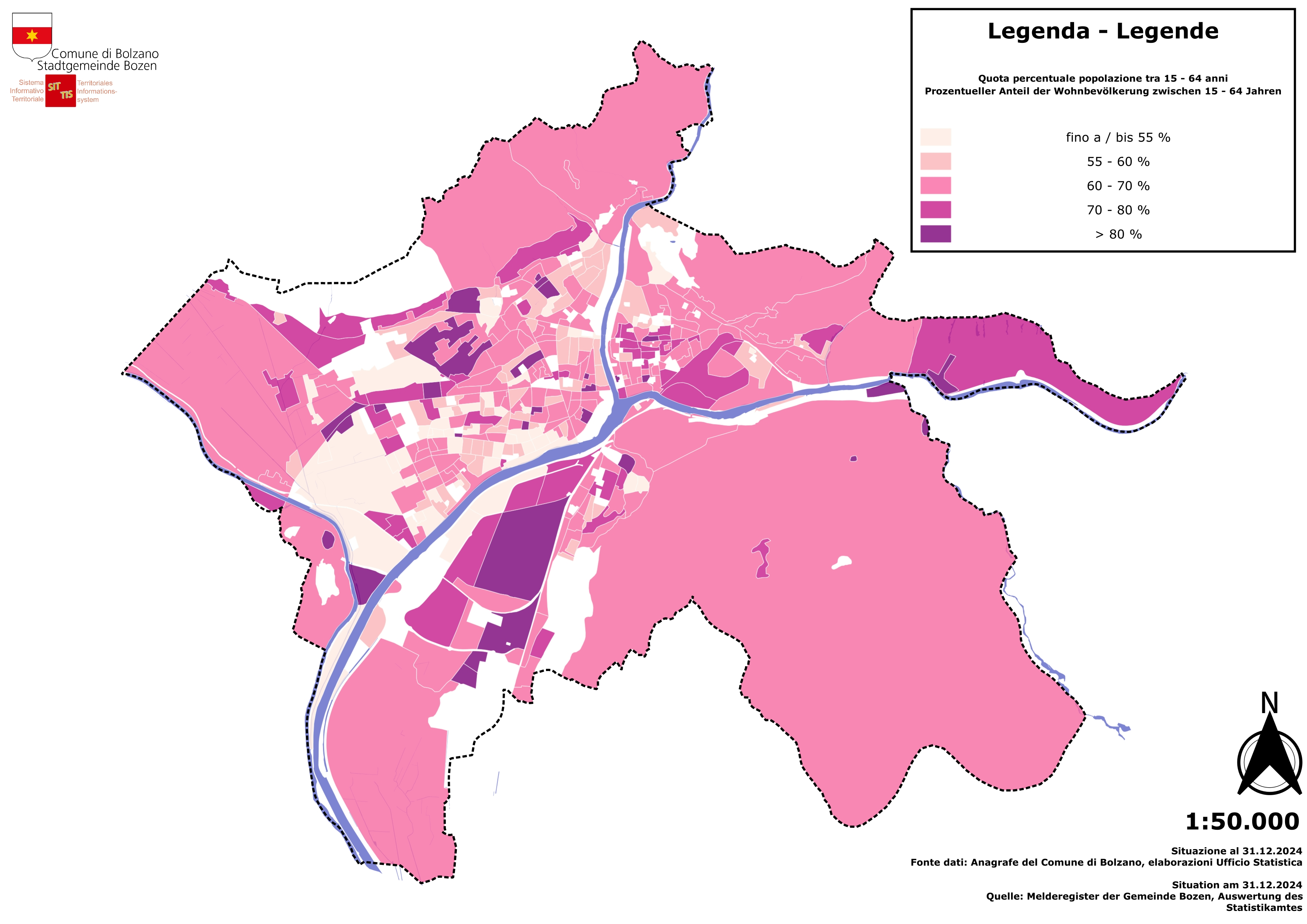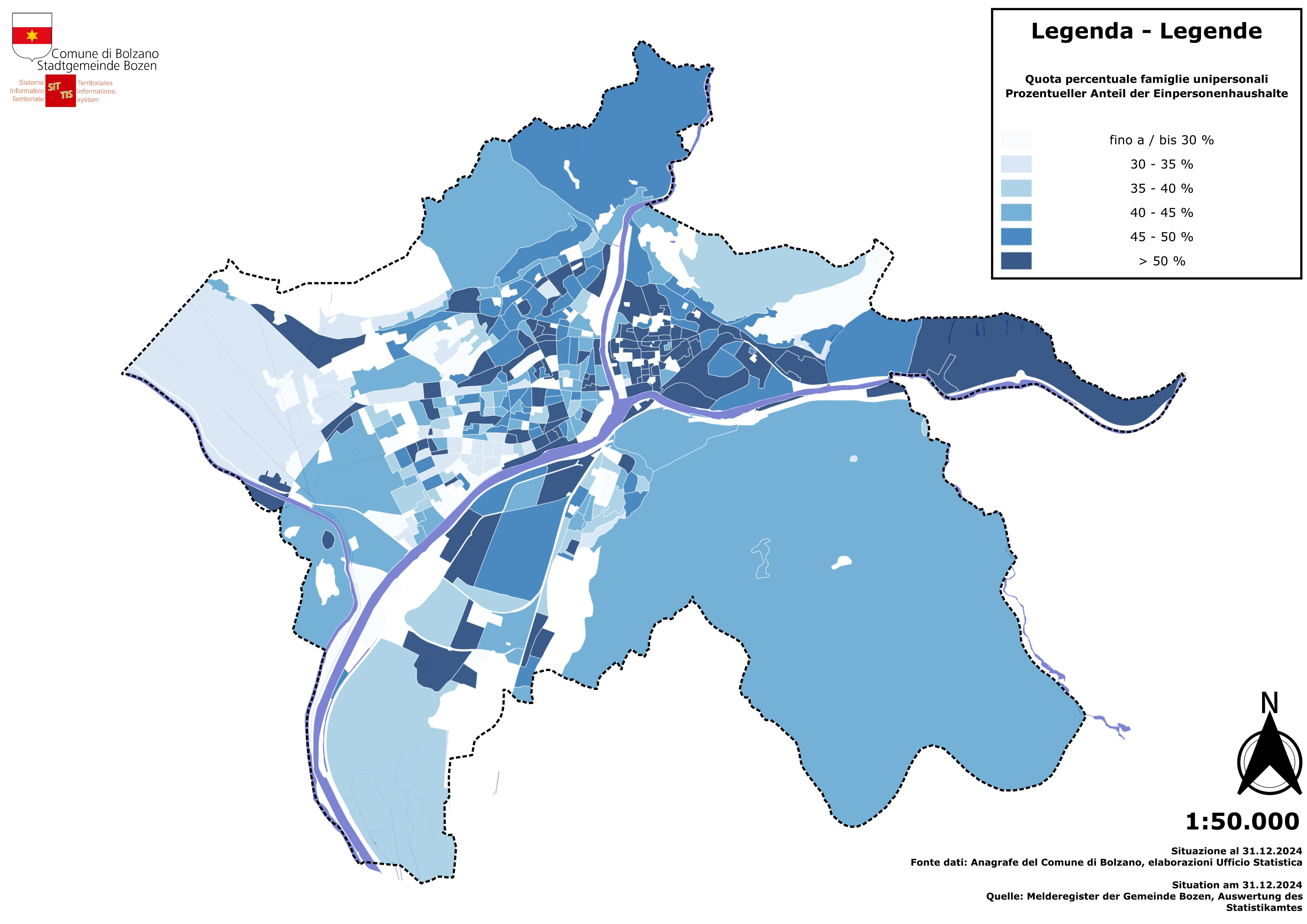 Annualmente poi, l'Ufficio Statistica e Tempi della Città provvede ad elaborare un'analisi approfondita e dettagliata per singoli aspetti e profili, della composizione e dell'evoluzione demografica di Bolzano. Questo lavoro viene pubblicato ogni primavera con il titolo "Andamento e struttura della popolazione di Bolzano e dei suoi quartieri".
