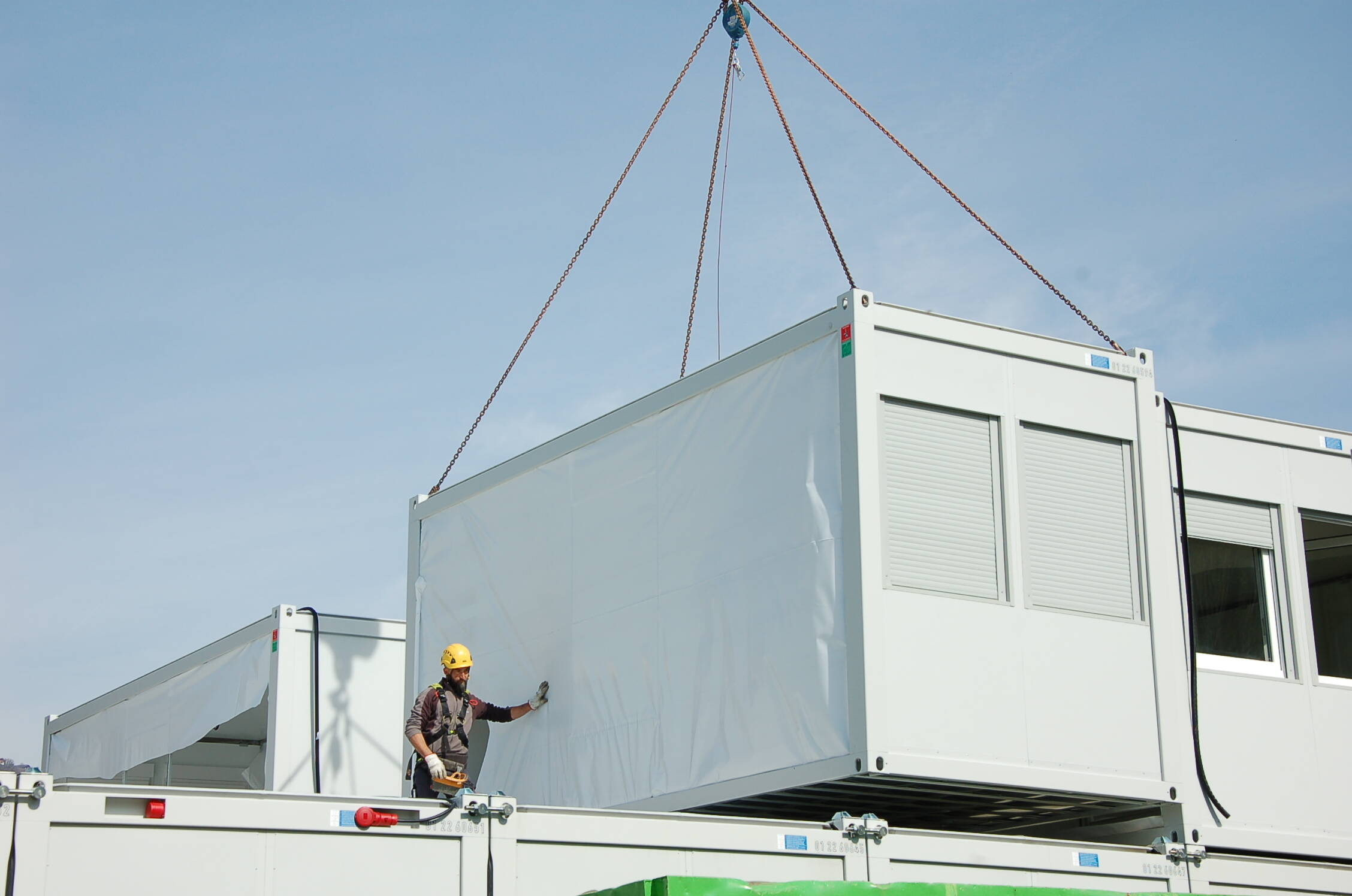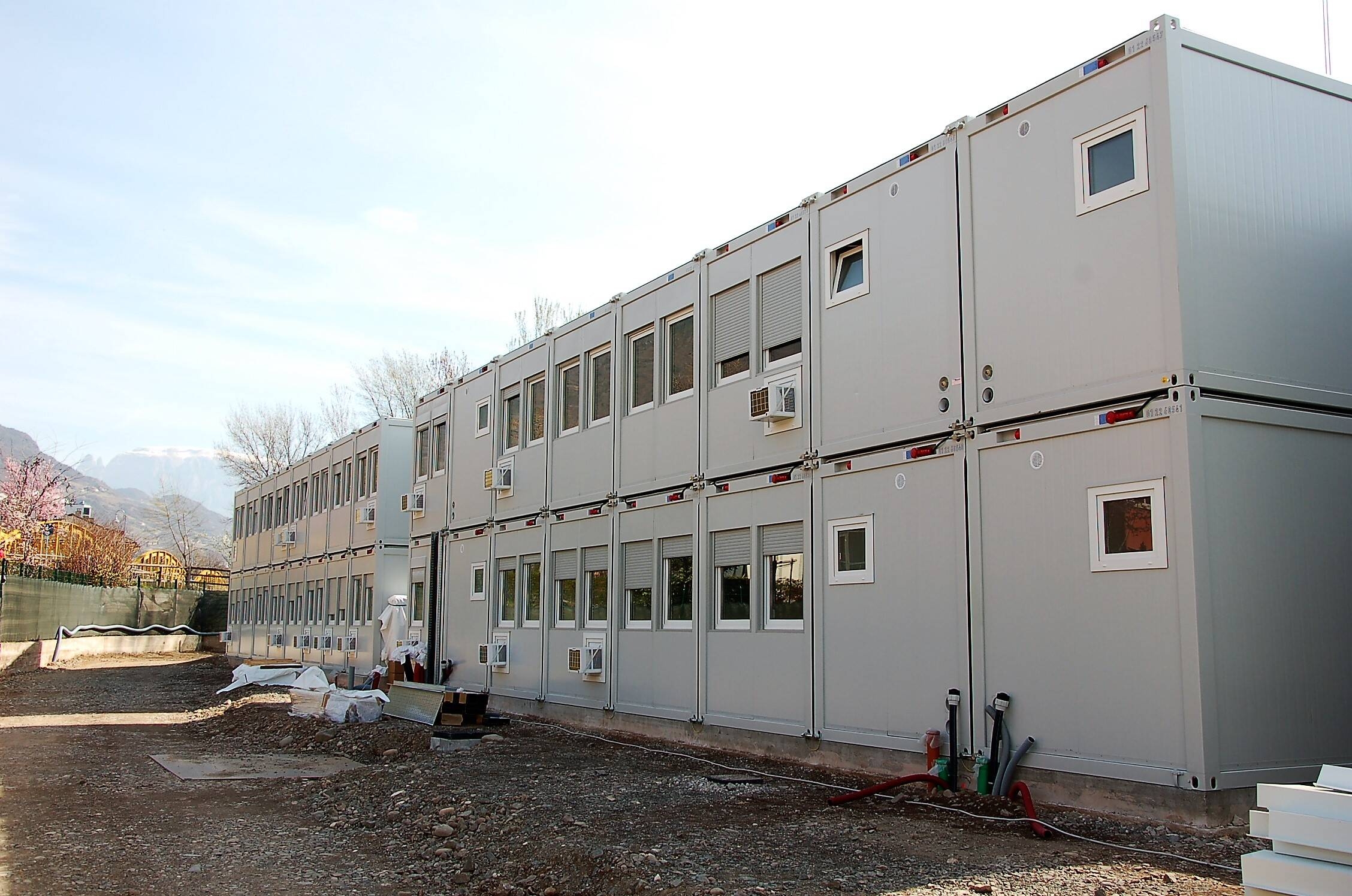 In dettaglio il progetto prevede la realizzazione di un edificio a due piani per una cubatura di circa 6.272 m³ ed una superficie lorda di circa 940 m² in grado di accogliere un totale di circa 230 alunni ed una quarantina tra insegnanti, operatori scolastici, e personale di servizio. Nei container troveranno spazio le aule e tutti gli ambienti scolastici di servizio. Previsti in totale 125 moduli suddivisi tra aule (14), laboratori (5), aule di sostegno (4), WC (10), corridoi (25 container), locali di servizio, pulizia, aula docenti, segreteria ecc. Saranno due gli accessi alla scuola, uno da viale Trieste (anche veicolare oltre che pedonale e ciclabile) attraverso la strada accanto alla ciclabile, ed uno (dal lato opposto) dalla ciclabile del lungo Talvera (solo pedonale e ciclabile). Oltre a parcheggi per auto, nel nuovo areale scolastico provvisorio sono previsti spazi esterni di ricreazione e 110 posti biciclette. Importo dei lavori a base d'asta poco oltre i 3 milioni di Euro.
