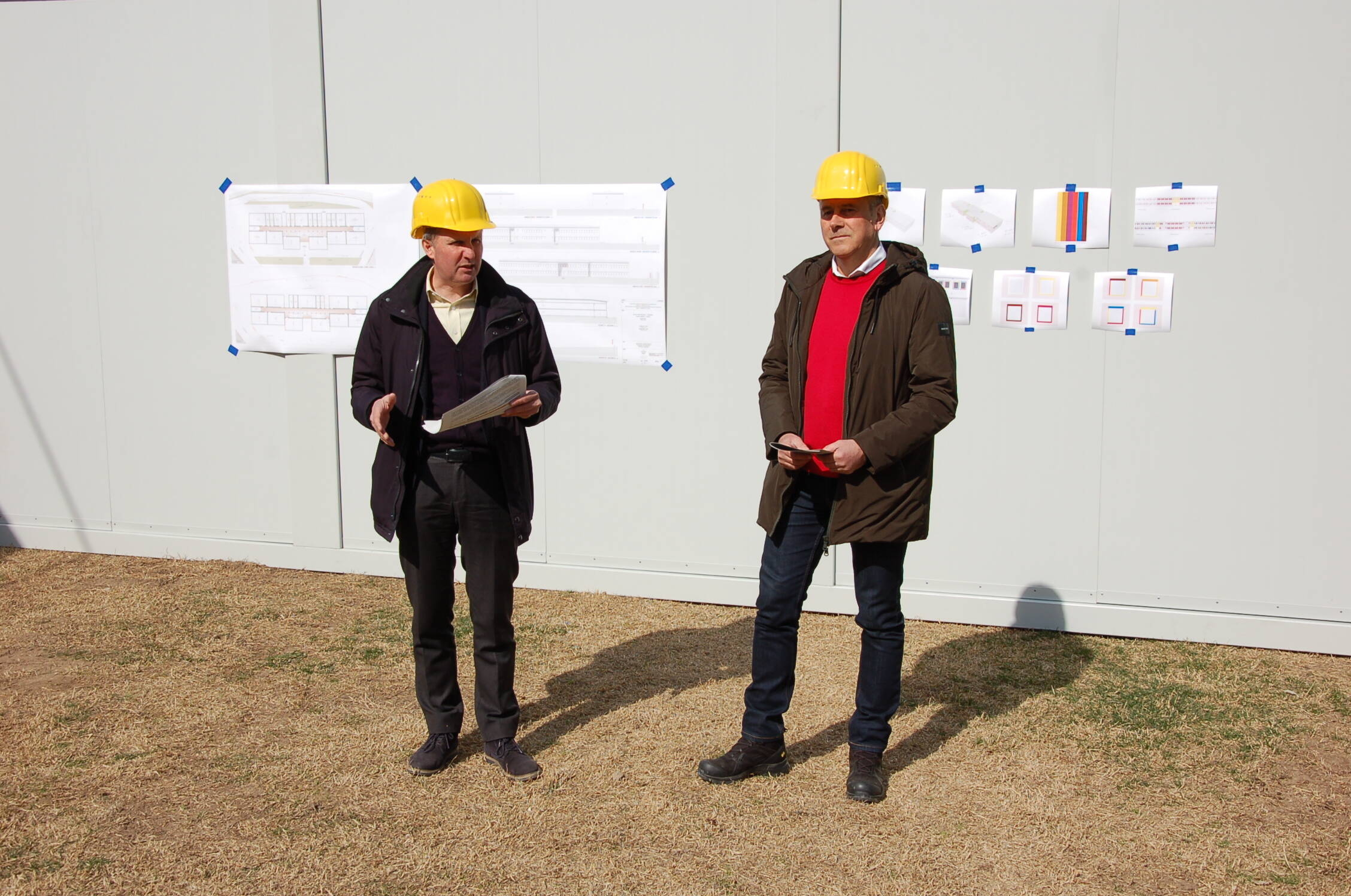 Nel corso di una conferenza stampa/sopralluogo sul posto, il Vice Sindaco e Assessore ai Lavori Pubblici Luis Walcher ha presentato lo stato di avanzamento dei lavori di realizzazione della struttura provvisoria a container ad uso scuola di rotazione sull'area ex Drusetto in viale Trieste destinata ad accogliere a partire dal prossimo anno solastico 2023-2024, studenti, insegnanti e personale della scuola media Ada Negri di viale Druso oggetto di un profondo e radicale intervento di ristrutturazione.