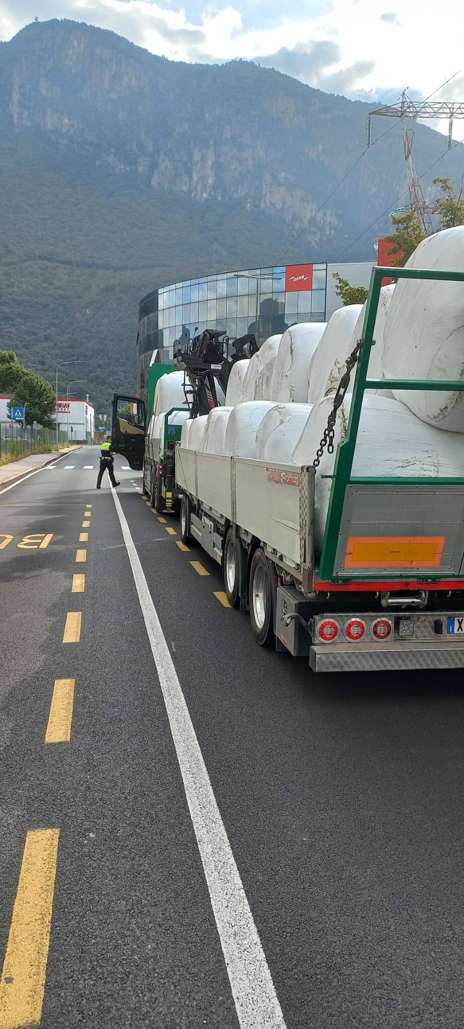 Il Nucleo autotrasporto della Polizia Municipale di Bolzano durante programmati controlli sulla circolazione dei mezzi pesanti in ambito cittadino, al fine di contribuire a sempre più elevati standard di sicurezza stradale, ha fermato un autotreno che da un controllo in peso risultava circolare con un sovraccarico di ben 11 tonnellate rispetto al consentito; anche la lunghezza del complesso di veicoli era fuori norma. E' stata quindi applicata la sanzione accessoria della sospensione della patente e della carta di circolazione ed una sanzione amministrativa pecuniaria da 794 Euro al conducente, alla ditta e al committente del viaggio per un totale di 2.400 Euro. Da un controllo dei tempi di guida e riposo, sono emerse inoltre altre 4 violazioni per ulteriori 600 Euro di sanzione.