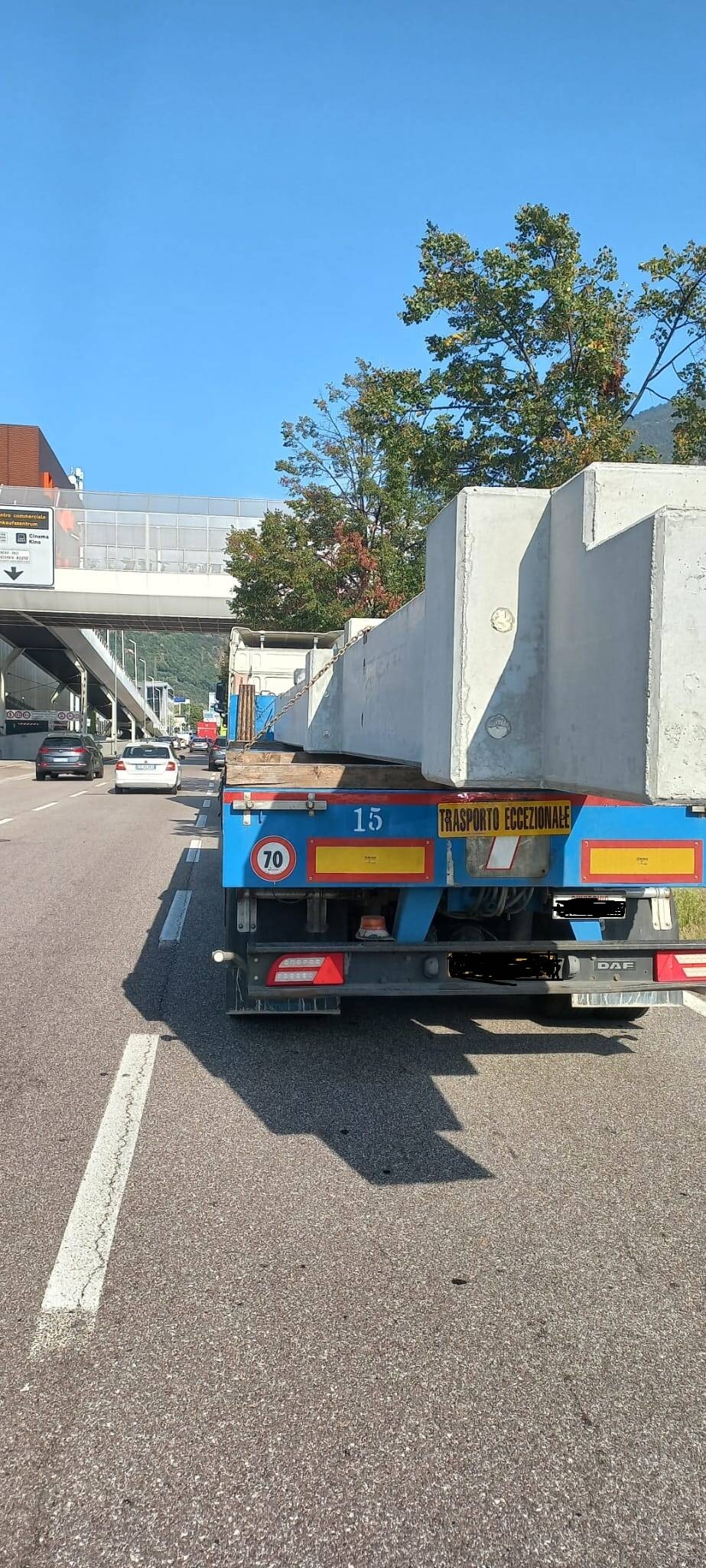 Nei giorni scorsi una pattuglia della Polizia Municipale di Bolzano (Nucleo Autotrasporto) ha fermato in zona industriale , via Galilei direzione centro, un trasporto eccezionale per dimensioni. Il veicolo (autoarticolato) era privo di autorizzazione al transito, della prescritta scorta tecnica e non aveva con se l'elenco delle strade percorribili da tali veicoli. Sono scattate, oltre le sanzioni amministrative pecuniarie (trasgressore, proprietario, committente) con un importo pari a circa 2.500 Euro, anche le sanzioni amministrative accessorie della sospensione patente e della carta di circolazione con relativo fermo amministrativo (periodo da uno a due mesi) del complesso dei veicoli. Il conducente, sottoposto, come di consueto alla prova etilometrica, è risultato negativo (valore 0,00).
