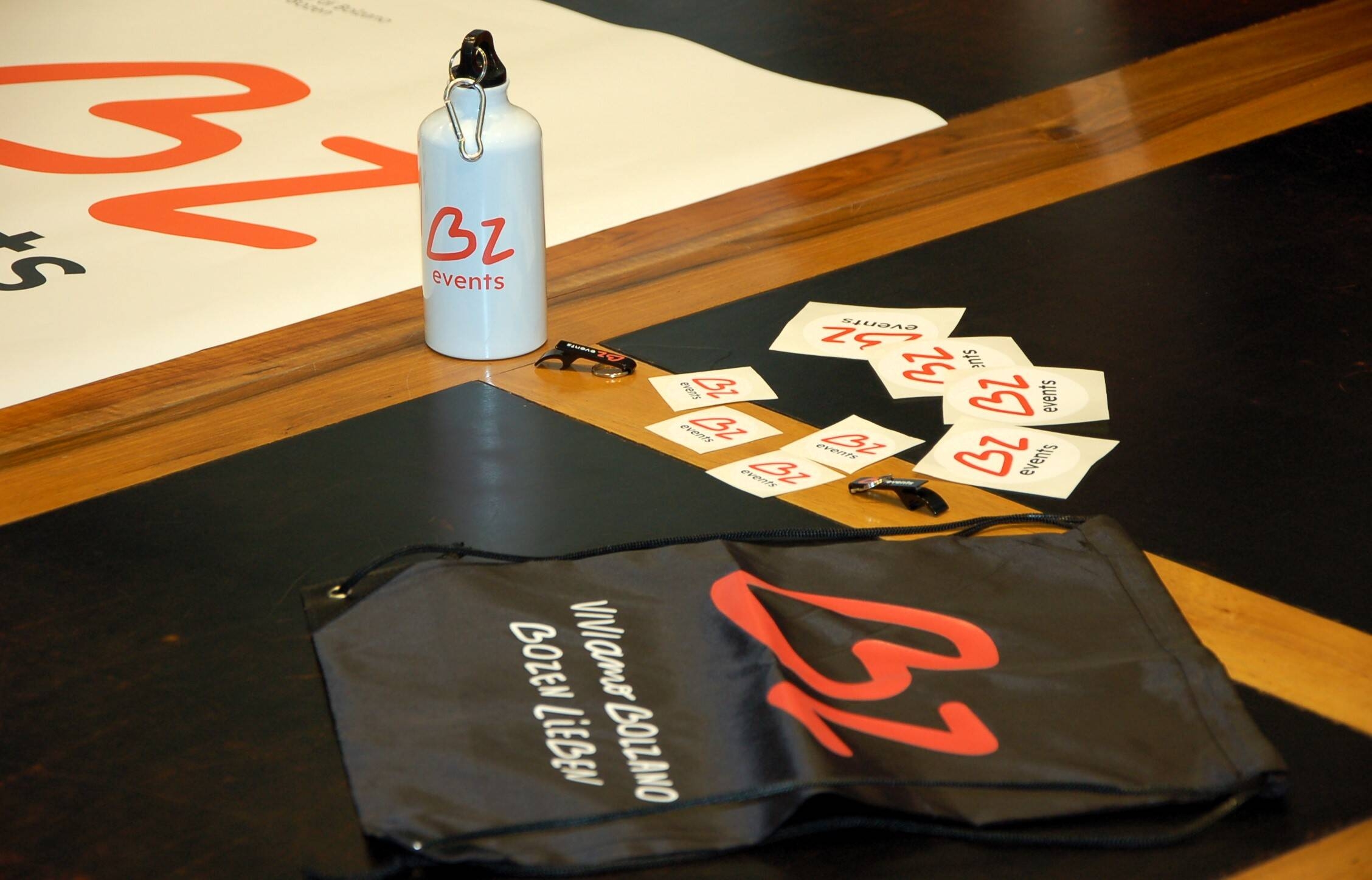Il nuovo logo BZ events si presta a diverse applicazioni anche su supporti cartacei, adesivi, bottigliette, borracce, magliette e oggettistica varia.