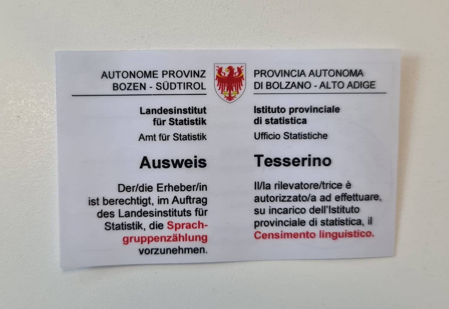 Un centinaio di rilevatori incaricati del Comune, muniti di apposito tesserino di riconoscimento, passerà di casa in casa per consegnare e poi raccogliere i moduli a quei cittadini italiani residenti in provincia di Bolzano al 30 settembre 2023 che non hanno ancora partecipato al Censimento.