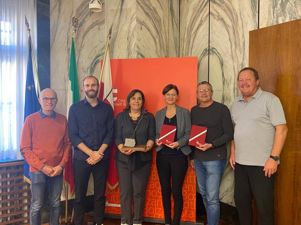 Una delegazione di Mauthausen in visita sabato scorso a Bolzano per studiare la contestualizzazione dei monumenti "controversi", è stata dapprima ufficialmente ricevuta in municipio all'Assessora comunale alla Cultura Chiara Rabini e quindi accompagnata suoi luoghi d'interesse. Con la delegazione composta da assessori e consiglieri comunali della cittadina di Mauthausen, anche la Parlamentare austriaca Sabine Schatz e l'Assessore alla Cultura e rappresentante dell'associazione "Perspektive Mauthausen" Walter Hofstaetter. L'incontro ha visto la partecipazione anche di alcuni componenti la Commissione Cultura e di funzionari dell'Assessorato alla Cultura del Comune di Bolzano.