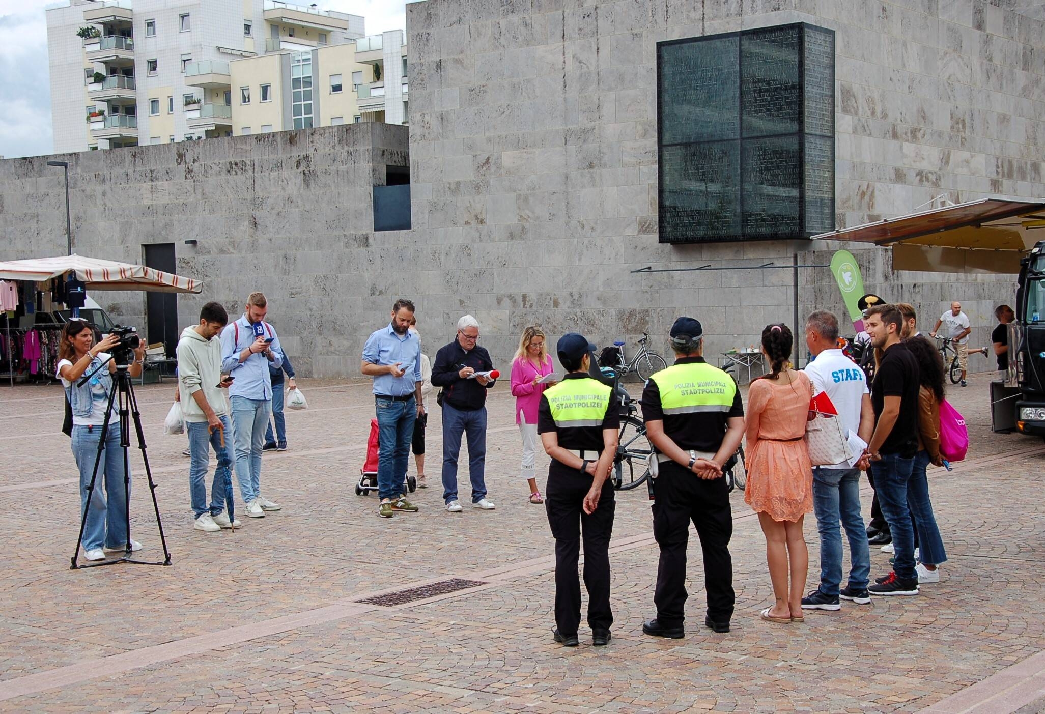 Sabato 16 settembre in Piazza Montessori è in programma un evento dedicato alla sicurezza stradale promosso dal Quartiere Don Bosco dal titolo: "Di sicuro" e organizzato in collaborazione con l'Ufficio Partecipazione e Decentramento del Comune di Bolzano. Stamane la presentazione pubblica nella piazza vero cuore pulsante del Firmian, alla presenza di rappresentanti dell'amministrazione cittadina con l'Assessore al Decentramento, della Circoscrizione (Presidente, Vicepresidente, Consiglieri), delle forze dell'ordine e delle associazioni protagoniste della manifestazione.