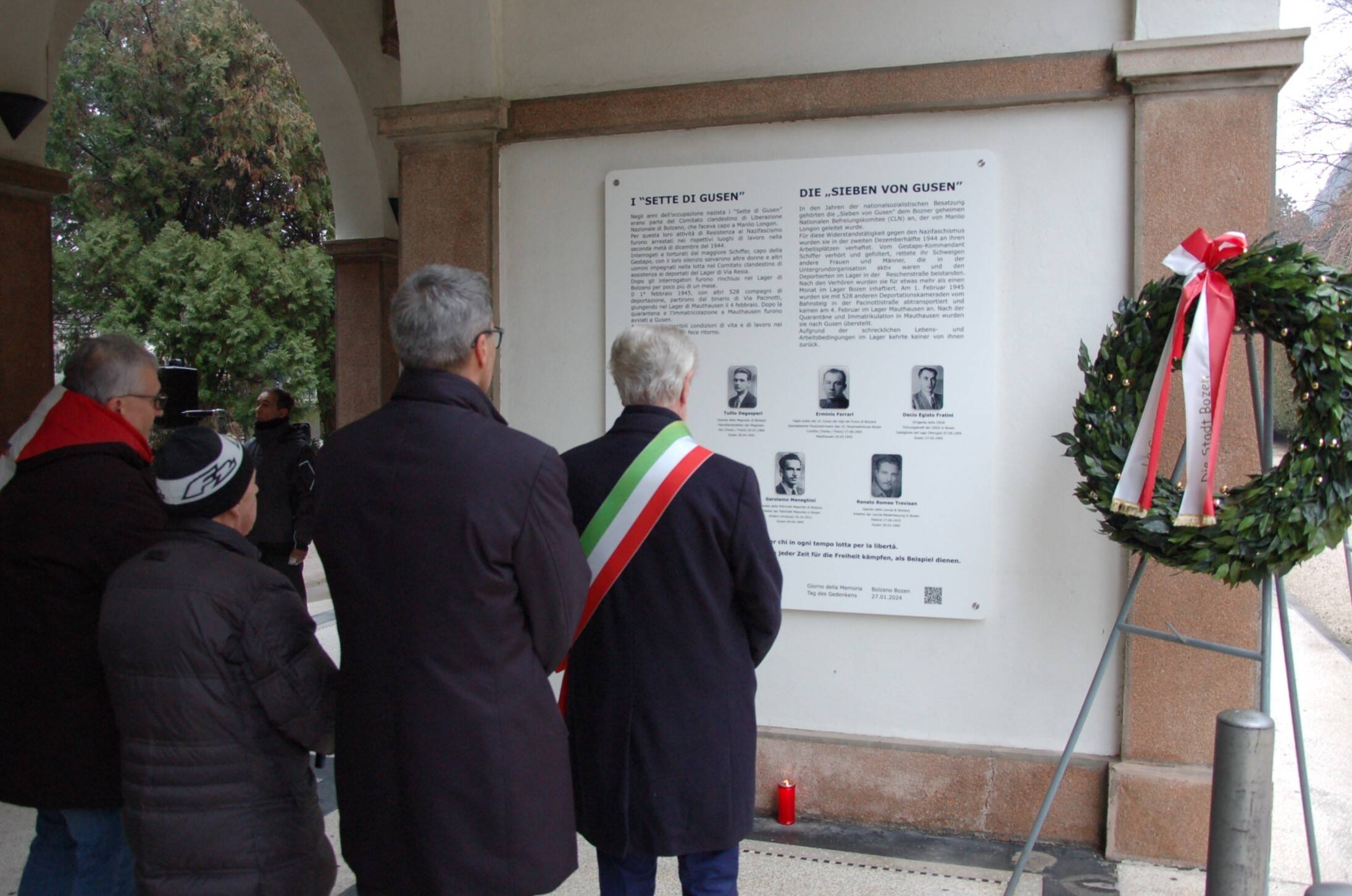 Stamane a Bolzano alla presenza del Sindaco Renzo Caramaschi, del Presidente della Provincia Autonoma Arno Kompatscher e di numerose autorità politiche, civili e militari di Stato, Provincia e Comuni, nonchè del Presidente provinciale dell'ANPI Guido Margheri e di rappresentanti della Comunità Ebraica di Merano e delle Associazioni Combattentistiche e d'Arma, della Comunità Sinti ed LGBT, si sono svolte a Bolzano, le Cerimonie ufficiali in occasione del Giorno della Memoria nell'anniversario dell'abbattimento dei cancelli del Lager di Auschwitz (27/1/45). Primo appuntamento al Muro dell'ex Lager di via Resia con la deposizione di corone in memoria dei deportati e in ricordo anche dei Sinti e degli omosessuali vittime dell'Olocausto.