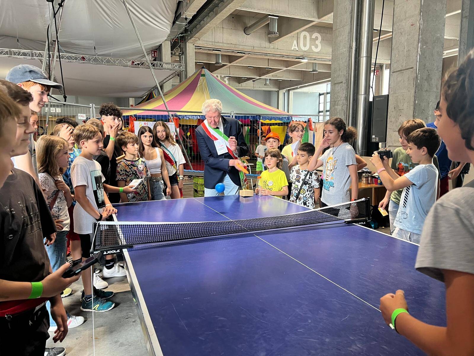 Stamane il Sindaco Renzo Caramaschi ha fatto visita ai giovani protagonisti di MiniBZ 2024, la Città dei Ragazzi in corso alla Fiera di Bolzano. Organizzata dal VKE con il patrocinio del Comune di Bolzano, MiniBZ è un gigantesco gioco di ruolo in una vera e propria città in miniatura, all'interno della quale i ragazzi trovano riprodotte e allestite le più importanti strutture e funzioni, oltre ai servizi di una vera città. Giocando, i partecipanti possono così conoscere e sperimentare pregi e difetti del vivere quotidiano in una comunità cittadina. E' proprio il carattere di "serietà" della Città dei Ragazzi a farne qualcosa di molto particolare e stamane anche il Sindaco Caramaschi ricevuto dalla piccola collega Mini Sindaca ne he ha avuto la riprova. Accolto così dalla Mini prima cittadina e dalla Mini Giunta comunale, il Sindaco è stato accompagnato a visitare la Città dei Ragazzi. Prima tappa, ovviamente il Mini municipio per un confronto sulle problematiche di Bolzano ed il modo di affrontare e cercare di risolvere problemi e contrapposizioni. La visita ha toccato vari Mini servizi: anagrafe, ufficio ambiente, la banca, la posta, i negozi, la redazione del Mini giornale, la Mini radio e la Mini tv e poi cinema, sartoria, teatro, pronto soccorso, ecc. La Città dei Ragazzi ospita giovani di età compresa tra i 7 e di 14 anni. MiniBZ è dal 1990 una città dove la parola e l’azione spettano ai ragazzi e dove gli adulti hanno un accesso limitato. Ogni partecipante può scegliere a suo piacimento il grado di inserimento, sia temporale che sostanziale. MiniBZ non vuole creare una perfetta riproduzione della realtà, ma rappresentarne le funzioni in maniera tale che si creino per i bambini, degli spazi per l'azione e il gioco, da riempire autonomamente. Il Sindaco Caramaschi, che si è anche dilettato con il tennis tavolo, si è complimentato con i Mini cittadini per l'organizzazione impeccabile e per la gestione attenta e partecipata di MiniBZ.