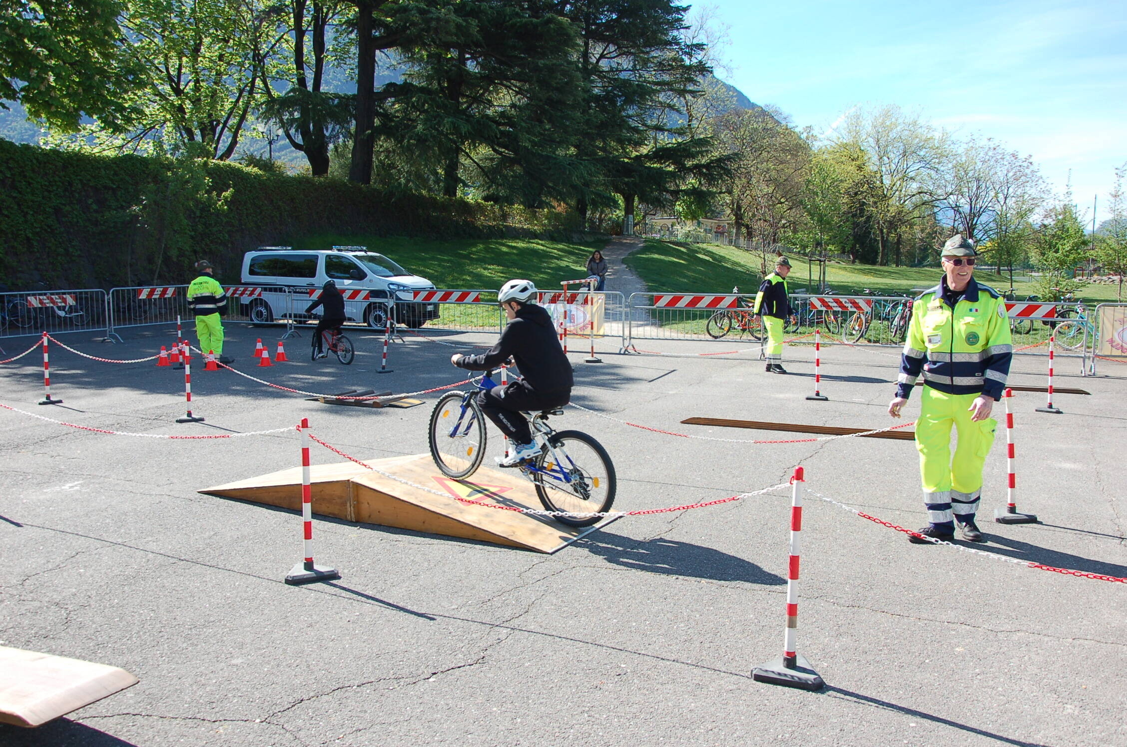 Il corpo di Polizia Municipale ha coordinato l’attività di un campo scuola completo di segnaletica e impianto semaforico. Questa esercitazione è particolarmente importante per valutare le conoscenze delle norme e dei segnali stradali. Al termine della prova viene rilasciata la “Bicipatente” con l’indicazione delle eventuali penalità. Gli alunni eseguono delle prove pratiche con la propria bicicletta all’interno del campo scuola completo di segnaletica stradale orizzontale e verticale e semaforo sotto lo sguardo e la direzione dei vigili urbani. Il campo scuola è stato messo a disposizione da S.T.A./Safety Park Strutture Trasporti Alto Adige.
