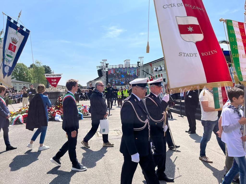 Una delegazione ufficiale della Città di Bolzano con gli assessori comunali Juri Andriollo e Johanna Ramoser ha partecipato alla manifestazione internazionale di Mauthausen in ricordo e in omaggio a tutte le vittime della deportazione nei Lager nazisti. Il gonfalone della Città di Bolzano presente all'importante appuntamento a cui prendono parte centinaia di labari in rappresentanza di regioni, province e città italiane e di tutto il mondo. A Mauthausen come ogni anno anche la responsabile dell'Archivio Storico cittadino Carla Giacomozzi. La cerimonia internazionale ricorda in particolare la data del 5 maggio 1945 che segnò la liberazione dei Campi di Mauthausen e Gusen. Per non dimenticare. "Onore nel rappresentare il Comune e grande commozione nel vedere questi luoghi di immenso dolore, in cui si perpetrarono orrendi crimini contro l’umanità" così l'Assessore Andriollo "È doveroso compito ricordare affinché questo non si ripeta mai più" ha sottolineato l'Assessora Ramoser. La delegazione della Città di Bolzano ha visitato anche Gusen, sottocampo di Mauthausen. "La Città di Bolzano in memoria dei "Sette di Gusen" e di tutti i deportati. Bolzano non dimentica" ha sottolineato Carla Giacomozzi.