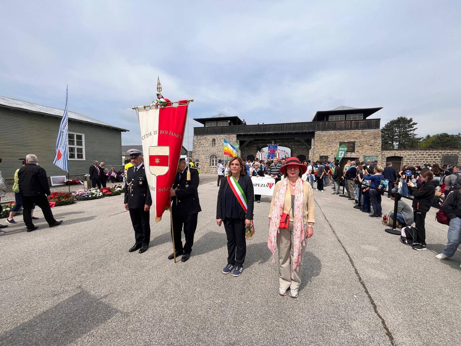 C'era anche una delegazione della Città di Bolzano guidata dall'Assessora alla Cultura Chiara Rabini alle celebrazioni di ieri a Mauthausen (ad una ventina di chilometri da Linz, in Alta Austria) in occasione del 79° anniversario della liberazione dei campi nazisti avvenuta il 5 maggio del 1945. Il Gonfalone della Città era dunque presente all'importante appuntamento a cui prendono parte ogni anno centinaia di labari in rappresentanza di regioni, province e città italiane e di tutto il mondo (56 le nazioni presenti). A Mauthausen, come ogni anno, anche la responsabile dell'Archivio Storico cittadino Carla Giacomozzi.