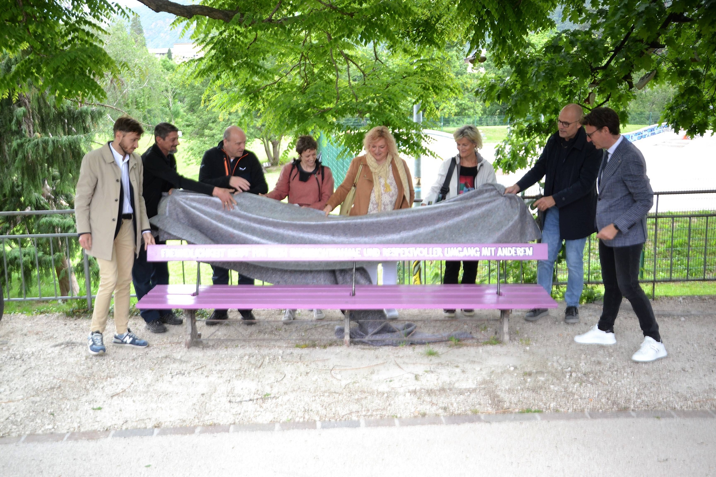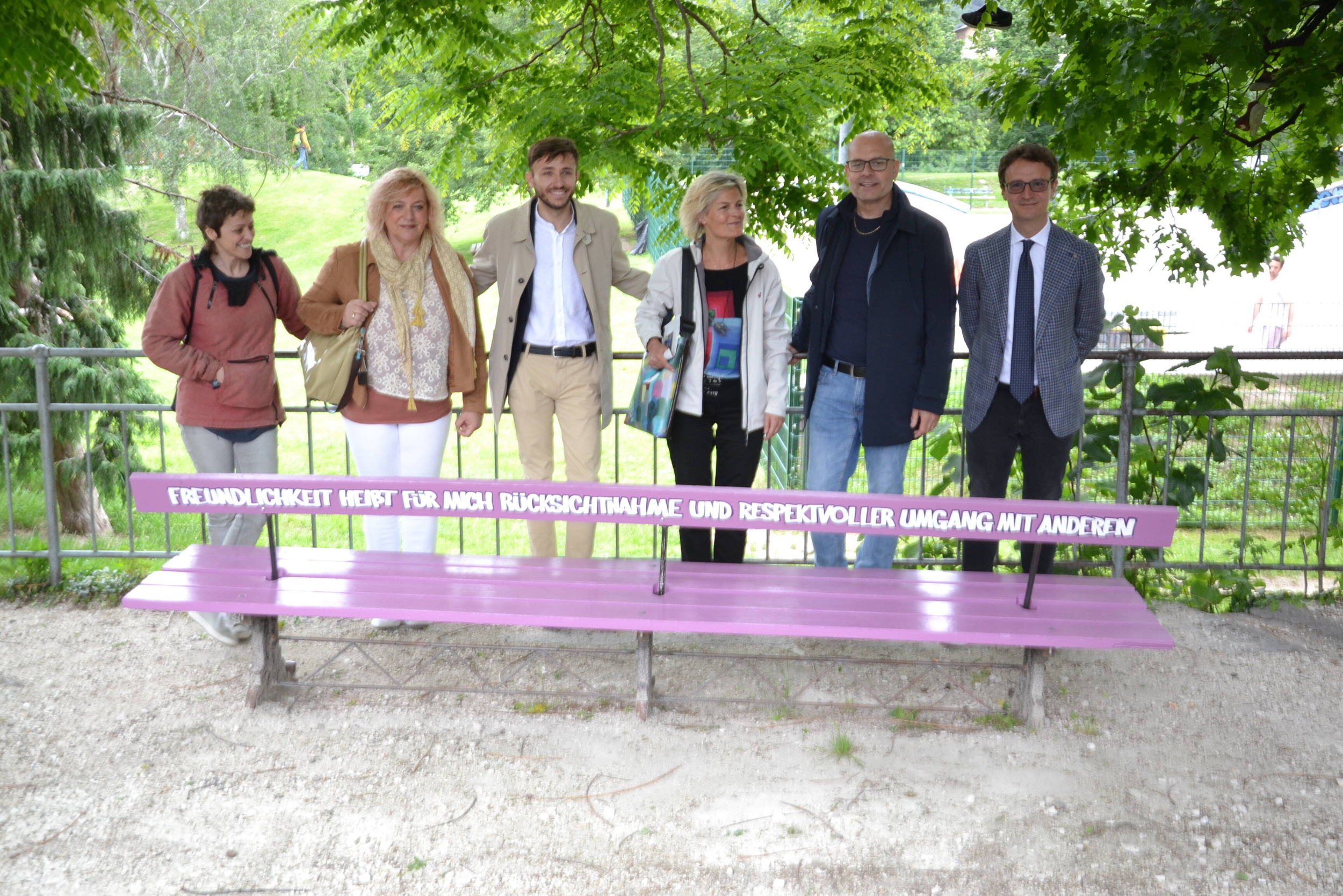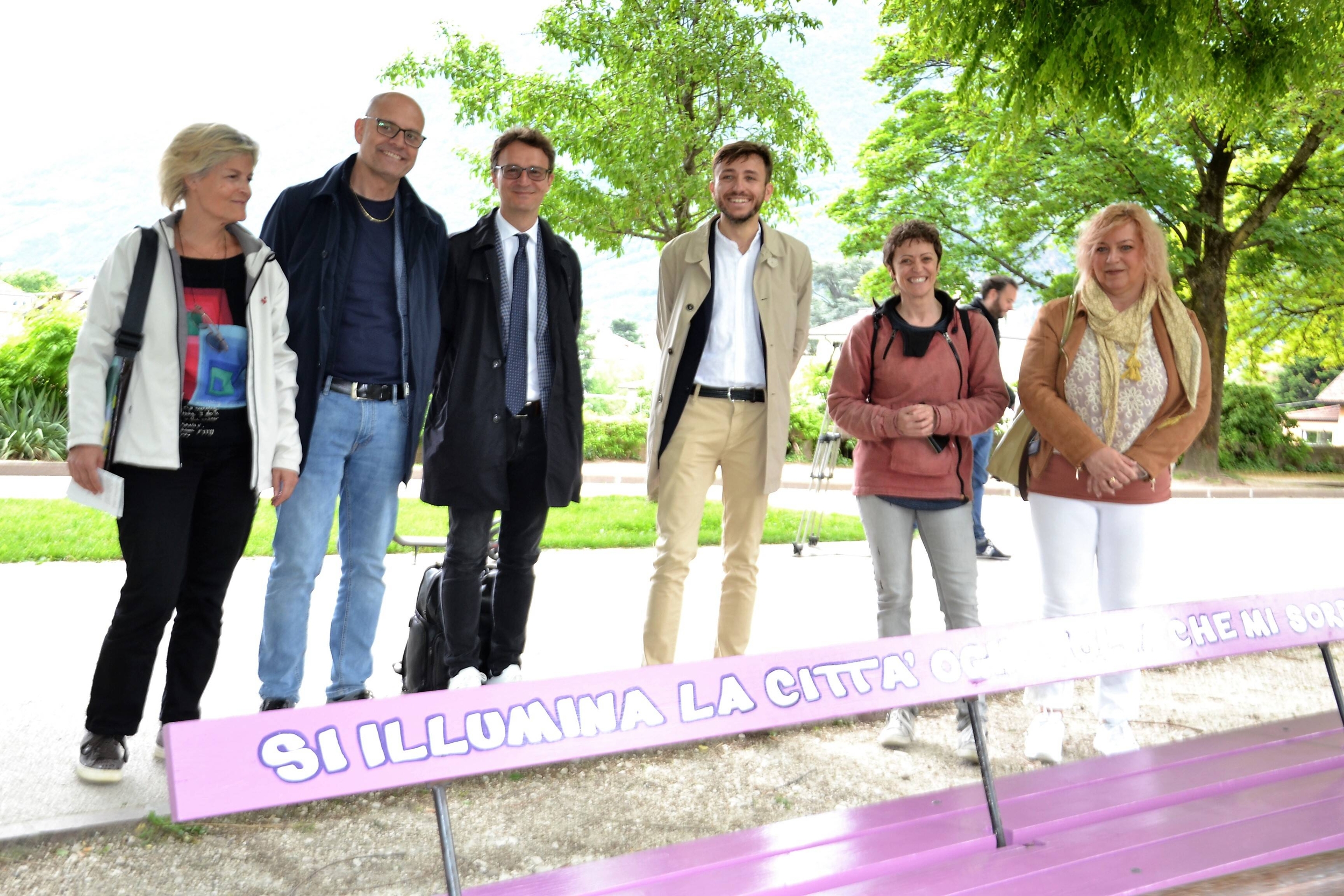 Tante idee e proposte: tra queste la riproduzione su una panchina viola (il colore della gentilezza) di alcune frasi e parole a tema. Questa particolarissima panchina è stata inaugurata stamane dagli Assessori comunali allo Sviluppo di comunità Angelo Gennaccaro e Politiche Sociali Juri Andriollo, sui prati del Talvera all’altezza dello Skatepark, luogo di incontro e confronto tra persone di generazione, cultura, lingua e colore diversi, che qui si ritrovano in maniera naturale e spontanea.