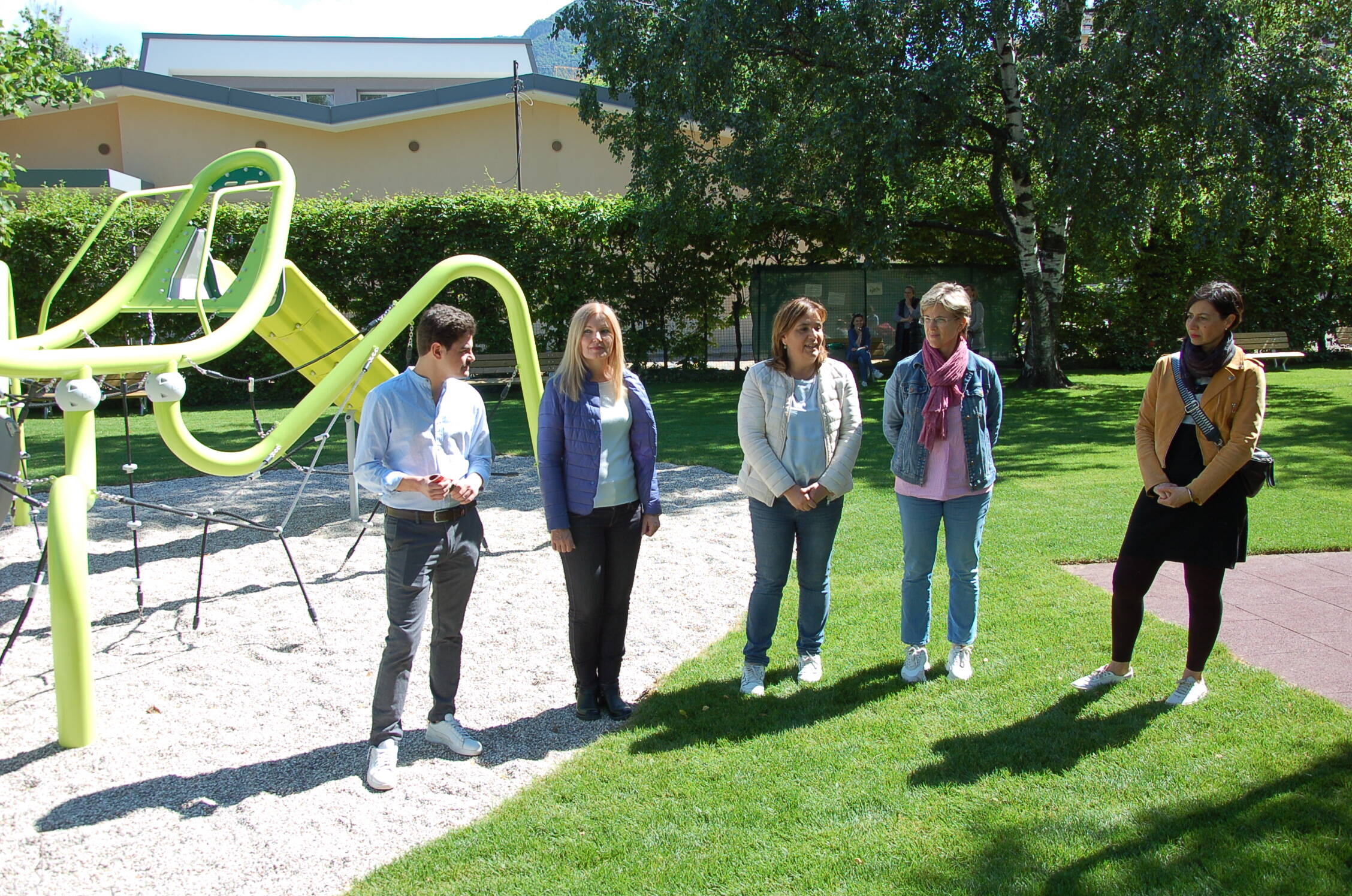 Sono terminati i lavori di manutenzione straordinaria del parco giochi di via Roen che dunque da oggi torna nuovamente accessibile al pubblico. Completamente rinnovato, dalle recinzioni alla rampa di accesso, dalla nuova struttura gioco multiuso all’impianto di irrigazione e al verde, il parco giochi all'interno del quale fa bella mostra di se la nuova struttura di arrampicata a forma di mantide lunga 8.80 metri per una larghezza di 4.60 metri è stato presentato ed inaugurato stamane dall'Assessora comunale all'Ambiente Chiara Rabini. All'incontro hanno partecipato anche i tecnici responsabili della Giardineria comunale Ulrike Buratti, Katia Zanoner e Claudia Perissinotto ed in rappresentanza del Quartiere Gries-S.Quirino, il vice Presidente Diego Laratta.
