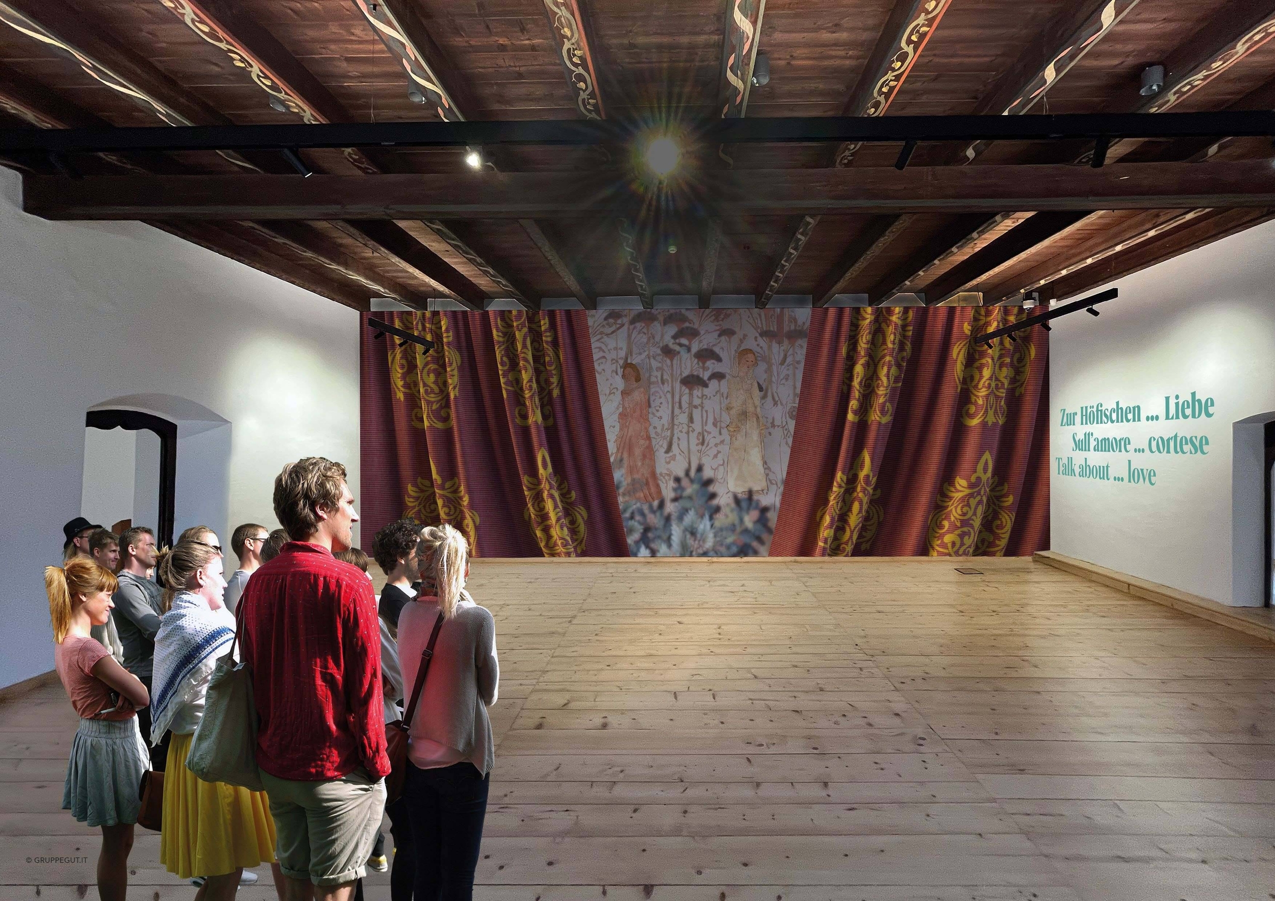Dal 2000 il “Maniero illustrato“ attira visitatori da tutto il mondo. Il ricco ciclo pittorico suscita entusiasmo con i suoi colori, le tematiche insolite e l’eccezionale stato di conservazione. 25 anni dopo la riapertura nasce una mostra che vuole indagare più a fondo questa fascinazione. Chi erano i committenti? Quali sono le tematiche raffigurate? Come mai una famiglia di mercanti bolzanini decide di crearsi, lontano dalla città, un luogo per celebrare gli ideali di nobiltà e cavalleria che all’epoca in realtà appartenevano già al passato? Con l’istituzione di questa mostra Castel Roncolo si modernizza e fa un passo verso una divulgazione più contemporanea. Il termine Maniero illustrato è diventato un marchio d’identità per il museo che si è affermato anche a livello internazionale. Sono proprio queste “illustrazioni”, gli affreschi, che determinano l’unicità di Castel Roncolo. Il significato delle immagini era palese ai loro committenti e osservatori contemporanei, ma sono pressoché perduti a noi. La nuova esposizione vuole ricreare questa esperienza e offrirla al visitatore odierno, a completamento degli affreschi originali.
