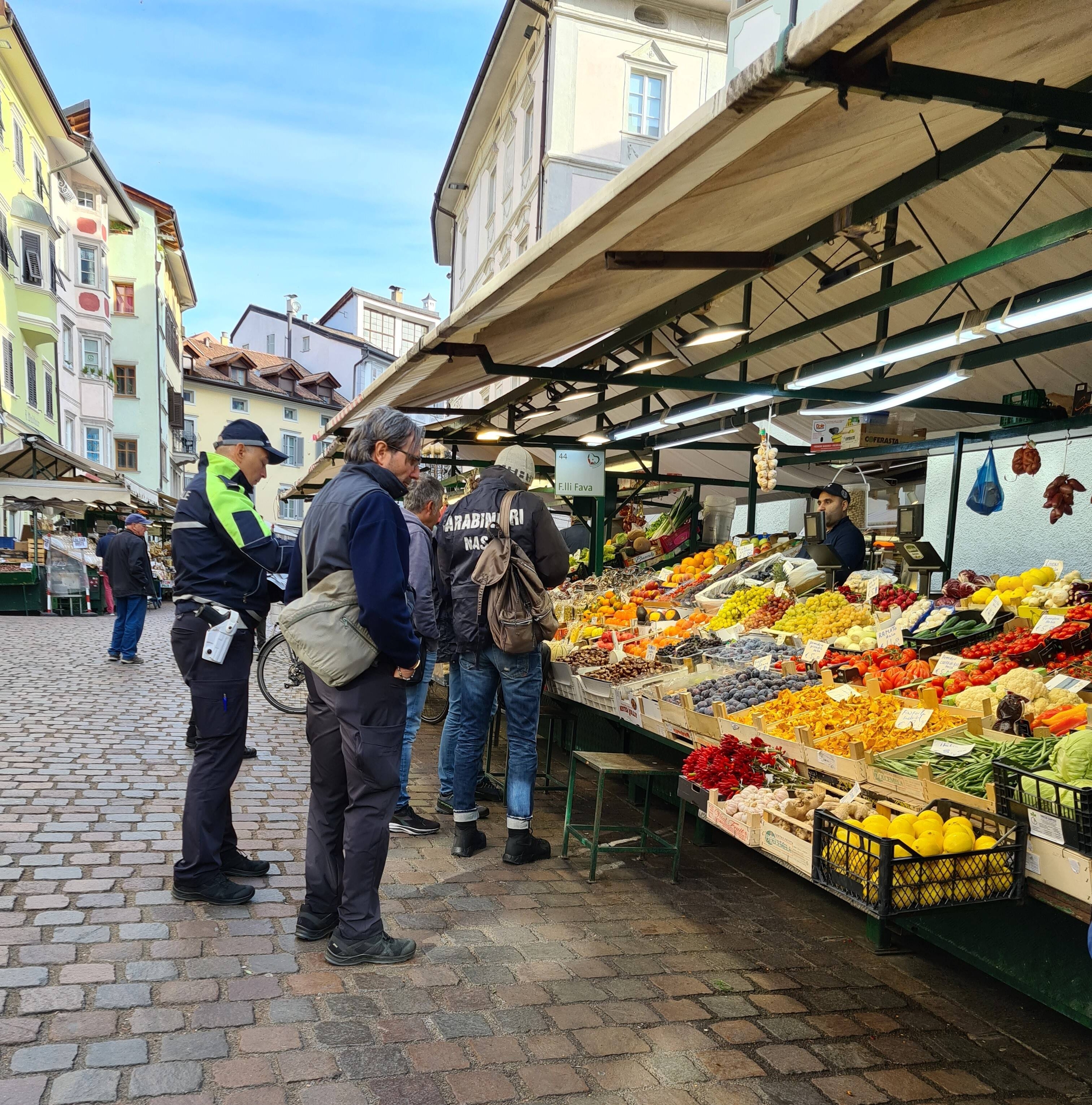 Il Nucleo Attività Economiche della Polizia Municipale ed il NAS dei Carabinieri di Trento, in collaborazione con il Comando Compagnia Carabinieri di Bolzano, hanno svolto nei giorni scorsi approfonditi controlli sull'attività del commercio ambulante in città ed in particolare al Mercato Storico di Piazza delle Erbe. Sono stati eseguiti sia controlli di carattere amministrativo sulle attività, che sulla tenuta e conservazione degli alimenti, nonché sulla pulizia dei siti di esposizione della merce. Il mercato risulta essere sostanzialmente in regola con le disposizioni di legge, anche se sono stati emessi 6 provvedimenti tra sanzioni e diffide, in particolare su aspetti amministrativi e di corretta esposizione della merce.