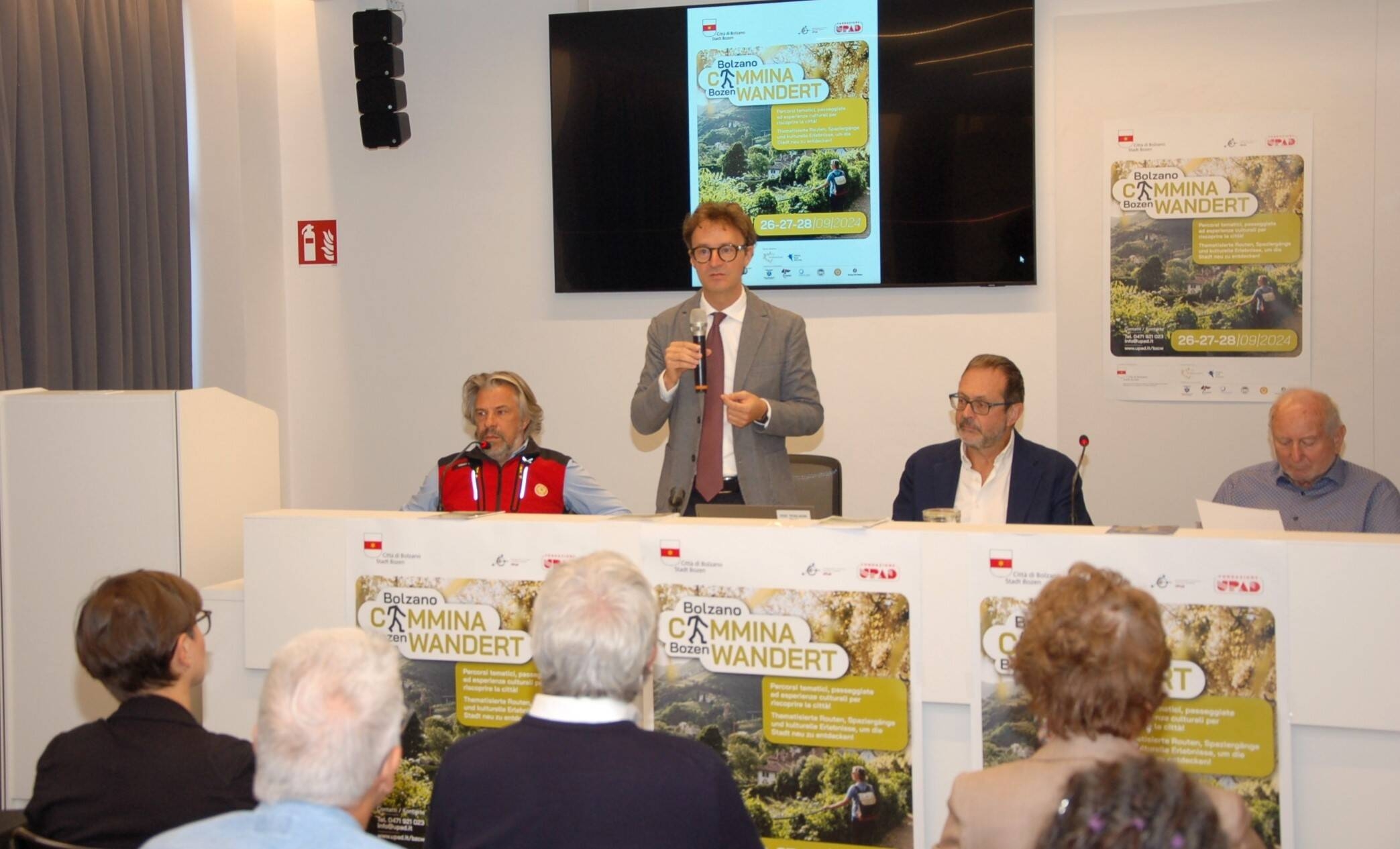 Promosso dalla Città di Bolzano (Assessorato alle Politiche sociali, Tempo Libero e Sport) in collaborazione con l'UPAD,ritorna anche quest'anno il Festival “Bolzano Cammina – Bozen Wandert”. L'evento dedicato alle camminate ed e al movimento in generale, si svolgerà da giovedì 26 a sabato 28 settembre prossimi proponendo una vasta gamma di attività, tra le quali camminate alla scoperta delle bellezze artistiche di Bolzano, escursioni al Colle, un trekking letterario, camminate per bambini e anche una corsa amatoriale con il coinvolgimento dell’Arma dei Carabinieri. I dettagli della manifestazione aperta a tutti, sono stati presentati stamane dall'Assessore comunale alle Politiche Sociali Juri Andriollo e dagli organizzatori nel corso di una conferenza stampa presso la sede UPAD in via Firenze.