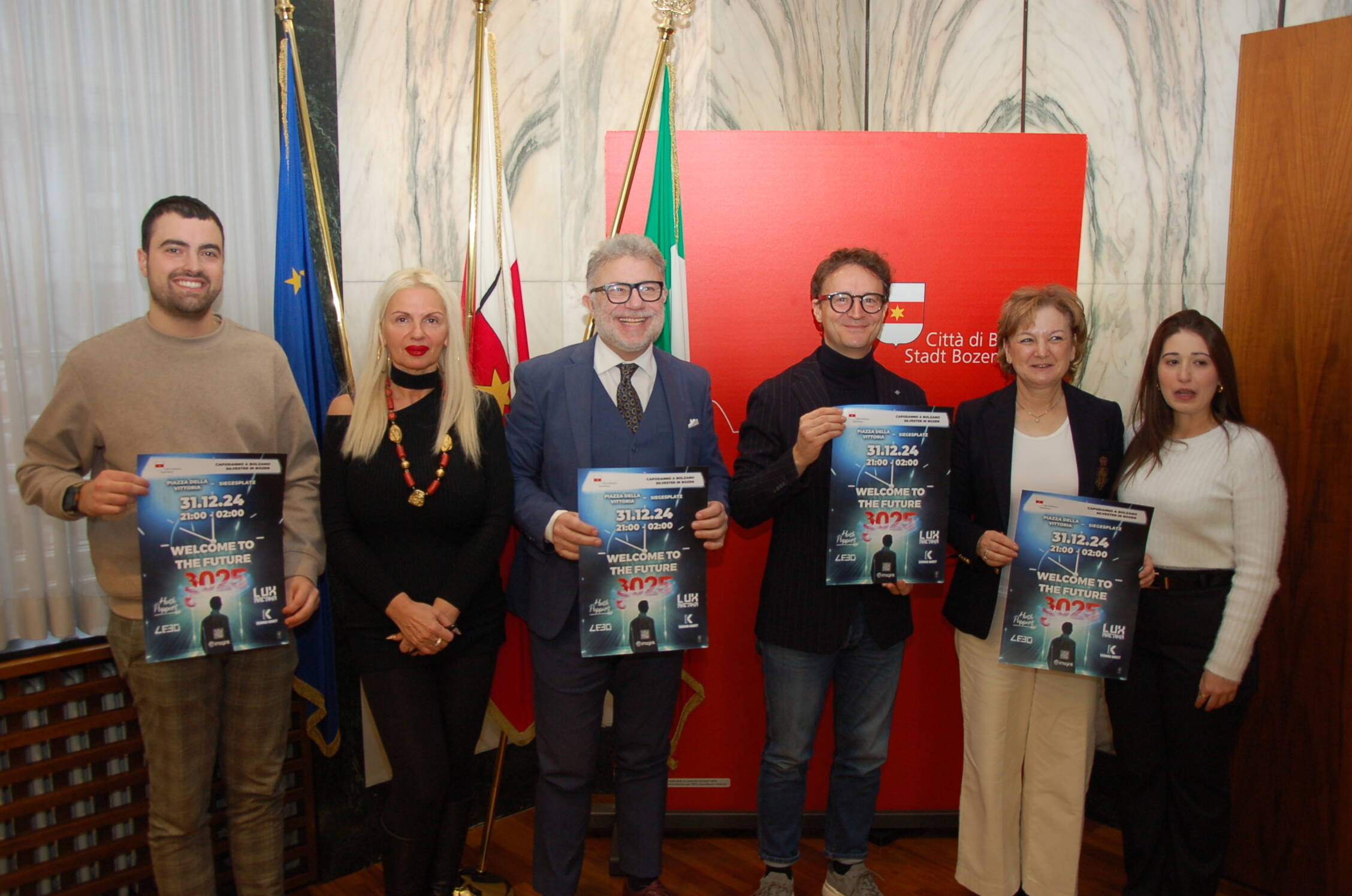 Stamane è stata presentata in municipio la Festa di Capodanno 2025 promossa dal Comune di Bolzano. L'appuntamento è in programma martedì 31 dicembre in piazza Vittoria a partire dalle 21:00 sino alle 02:00. Un evento straordinario per celebrare l'arrivo del nuovo anno con un tema affascinante e coinvolgente all’insegna dello slogan: "Welcome to the future". Una grande festa di piazza con musica, luci e colori che punta ad unire l'energia e la creatività dei giovani con una proposta capace di coinvolgere persone di ogni età. Piazza Vittoria si trasformerà in uno spazio futuristico, dove luci, suoni e performance artistiche guideranno il pubblico in un viaggio entusiasmante.