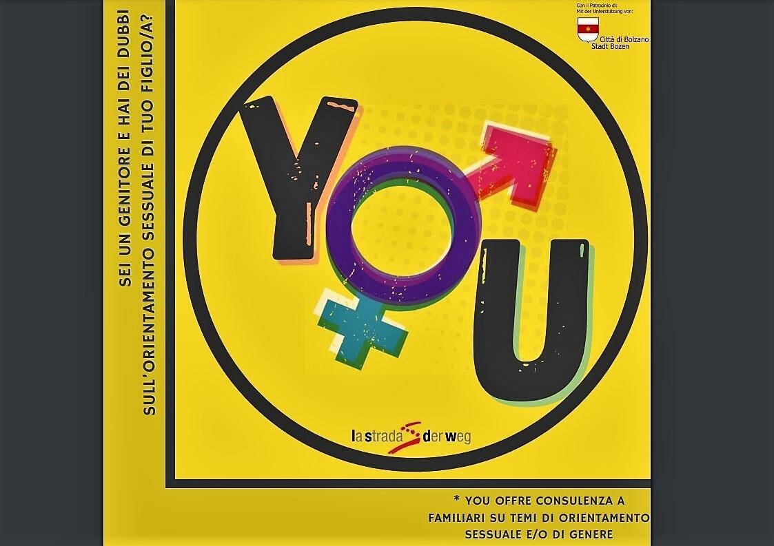 "You è più di un progetto" hanno detto Marina Bruccoleri e Cristina Mitta dell'associazione La Strada-Der Weg responsabili del servizio. "È la possibilità di confrontarsi con chi vive le stesse paure e difficoltà. You è uno spazio in cui avere il giusto supporto. You è l’occasione di non perdere i propri figli e figlie e di continuare a camminare al loro fianco senza perdere nemmeno un secondo il loro amore. I genitori di figli LGBTQ+ affrontano non poche difficoltà, quasi tutte derivanti dalla società. Ed è proprio come componenti di questa società che oggi siamo qui a ripresentare il progetto “You”. Un’occasione per guardarsi dentro e mettersi in gioco. Tutti. Come società. Le paure ci sono, inutile negarlo, così come le difficoltà indotte da un sistema sociale con una cultura patriarcale ancora molto rigida che si ripercuote oltre che sulla famiglia e soprattutto sui figli. Accettare l’omosessualità è ancora considerata un’enorme sfida. Bene, “You” raccoglie questa sfida affiancando e supportando i genitori e confrontandosi con loro e con quei concetti che nel corso della storia sono stati visti e trattati come tabù.