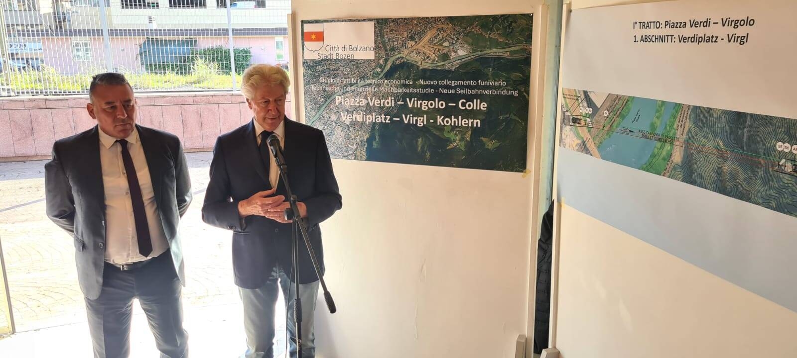 Stamane nel corso di una conferenza stampa nella torre che ospita l'entrata pedonale del parcheggio Bolzano Centro in piazza Verdi, il Sindaco di Bolzano Renzo Caramaschi ed il Vice Stephan Konder hanno presentato in dettaglio lo studio di fattibilità tecnico economica per un nuovo collegamento funiviario che, partendo da piazza Verdi collegherà dapprima il centro città con il Virgolo (1° tronco Bolzano-Virgolo; tempi di realizzazione: 5 anni) e quindi anche con il Colle (2° tronco Virgolo-Colle, lavori nel medio-lungo periodo, 15 anni circa).