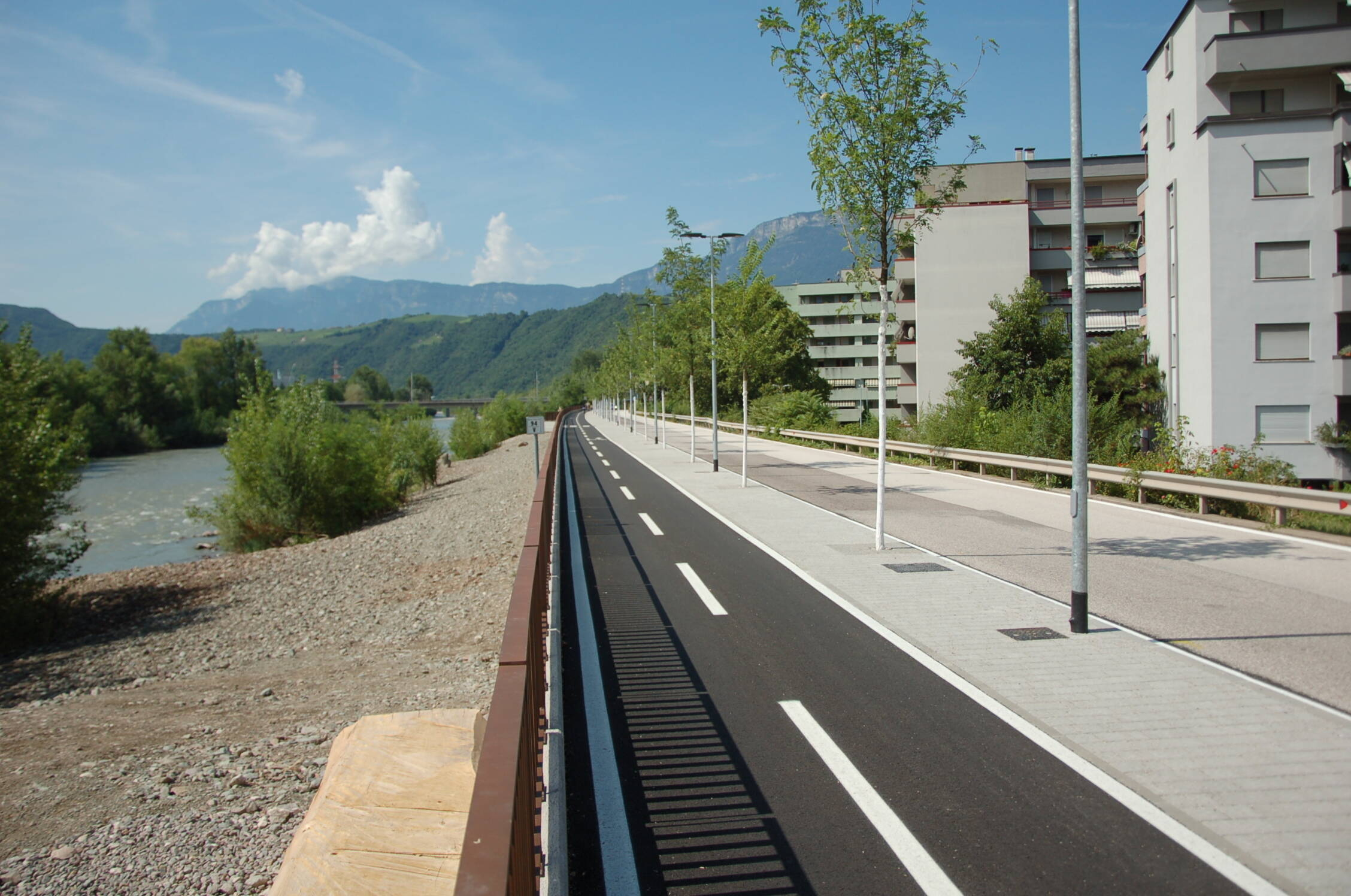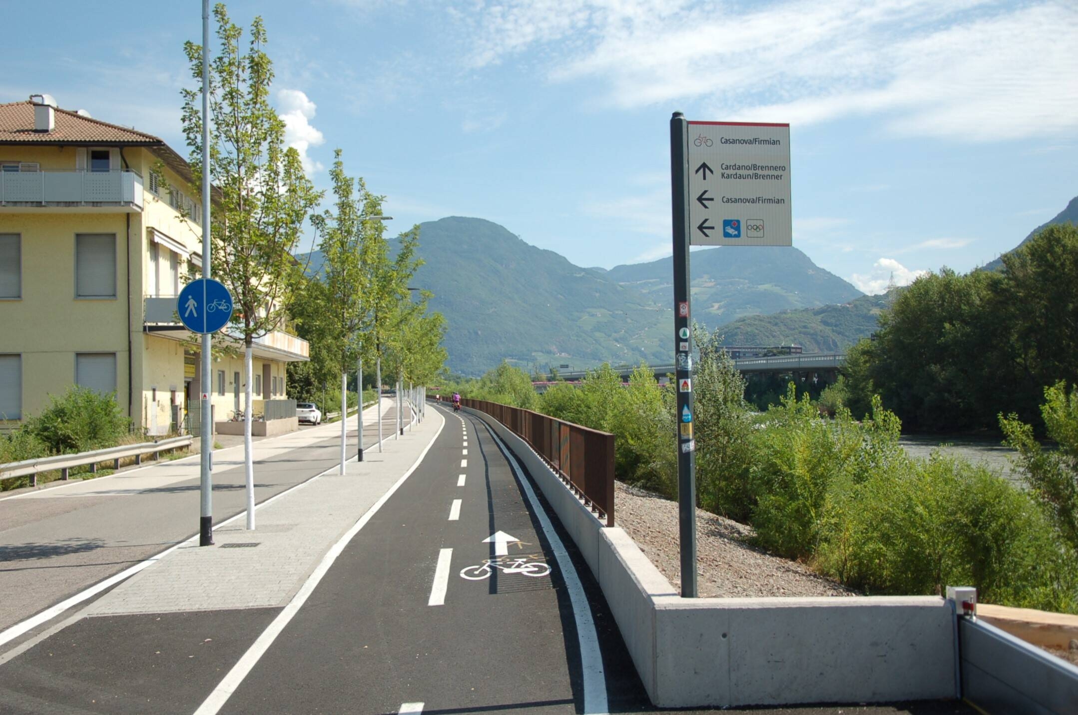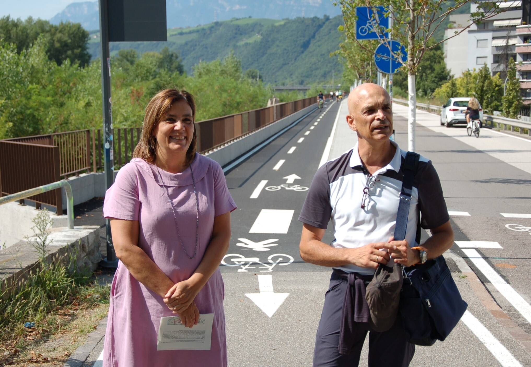 Sono terminati i lavori di realizzazione della nuova pista pedo-ciclabile sul Lungo Isarco destro nel tratto compreso tra ponte Resia e via Nicolò Rasmo, porta d'accesso del quartiere Casanova. L’Assessorato alla Mobilità del Comune di Bolzano infatti, con l’Agenzia per la Protezione Civile–Area funzionale Bacini Montani, ha provveduto al primo lotto del potenziamento della pista ciclabile Lungo Isarco destro detta “Direttissima” tra ponte Roma e la zona Casanova, come pianificato nel PUMS (Piano Urbano della Mobilità Sostenibile). Si tratta di una ciclabile particolarmente importante per gli spostamenti casa-lavoro verso il centro cittadino, oltre ad avere una grande valenza nell’ambito del cicloturismo. Per tutta la lunghezza del tratto oggetto dei lavori, a contatto con l’area golenale dell’Isarco per una lunghezza di circa 400 metri, sono stati realizzati pista ciclabile bidirezionale e percorso pedonale separato. Stamane l'Assessore alla Mobilità del Comune Stefano Fattor, ha presentato l'opera. All'incontro ha partecipato anche l'Assessora comunale all'Ambiente Chiara Rabini essendo stati collocati lungo il tratto di ciclabile una cinquantina di nuove piante.