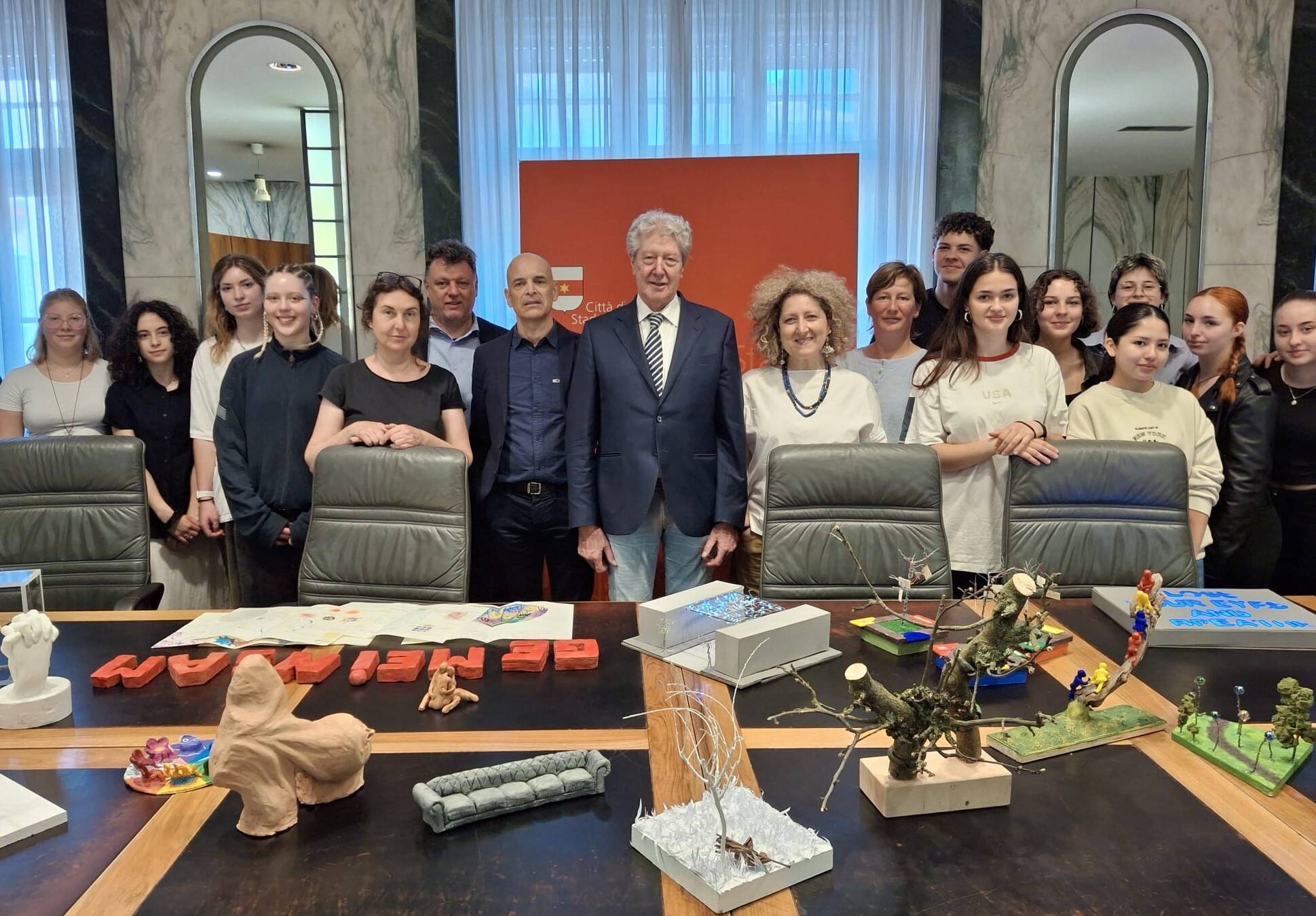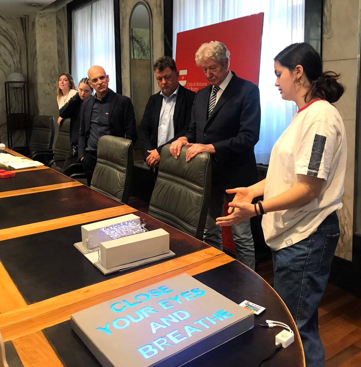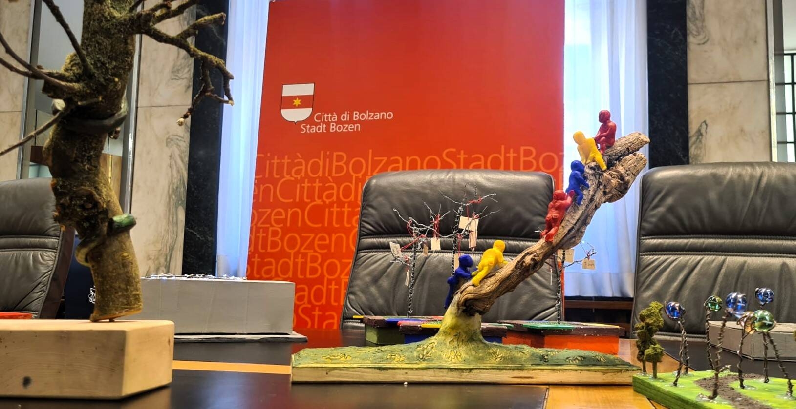 "La gentilezza salverà il mondo": partendo da questo assunto, gli studenti della III e IV D del Liceo "Pascoli" e della III B del Liceo "Vogelweide", sulla base di un progetto di riqualificazione urbana del quartiere Don Bosco ed in particolare di via Sassari promosso dall'Assessorato al Patrimonio del Comune di Bolzano, hanno realizzato delle vere e proprie opere d'arte in miniatura che, una volta valutate e giudicate da un'apposita commissione comunale, potranno essere realizzate concretamente a grandezza naturale e collocate in idonei spazi nel quartiere, per valorizzarne anche l' identità culturale. Stamane il gruppo di giovani studenti-artisti, accompagnato dalle docenti Nadia Pilati, Mariella Cocca e Jeannette Lampacher, (assente il prof. Micheal Niederegger che ha seguito il progetto con studenti della 5AK e 1BA) , ha presentato in municipio al Sindaco Renzo Caramaschi e agli assessori al Patrimonio ed ai Giovani Stefano Fattor e Christian Battisti, i modelli realizzati.