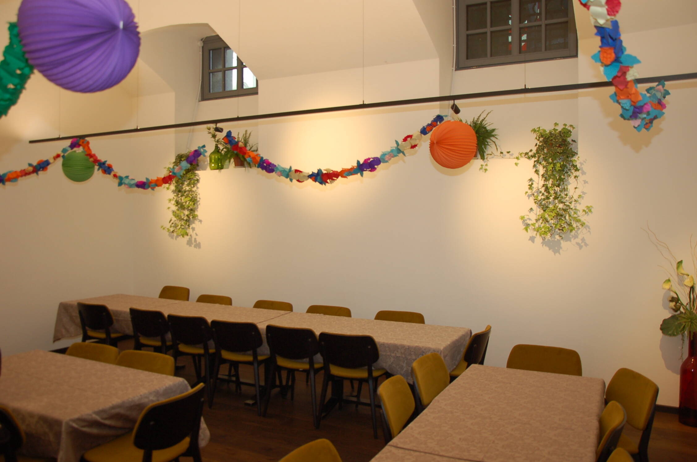 - nella sala Stube è stato necessario rimuovere l’allestimento ligneo che era stato inserito in tempi più recenti a causa del carico d’ incendio (smontato con cura, al momento depositato presso un deposito comunale) e così la volta esistente è ornata visibile e con essa le due aperture su Vicolo Gumer. Gli infissi sono stati sostituiti sul modello degli infissi storici, grazie al materiale d’ archivio recuperato assieme alla Committenza (nella sala bridge la sostituzione degli infissi è stata rimandata al più grande lotto di restauro che interesserà tutte le vetrate storiche del Municipio).