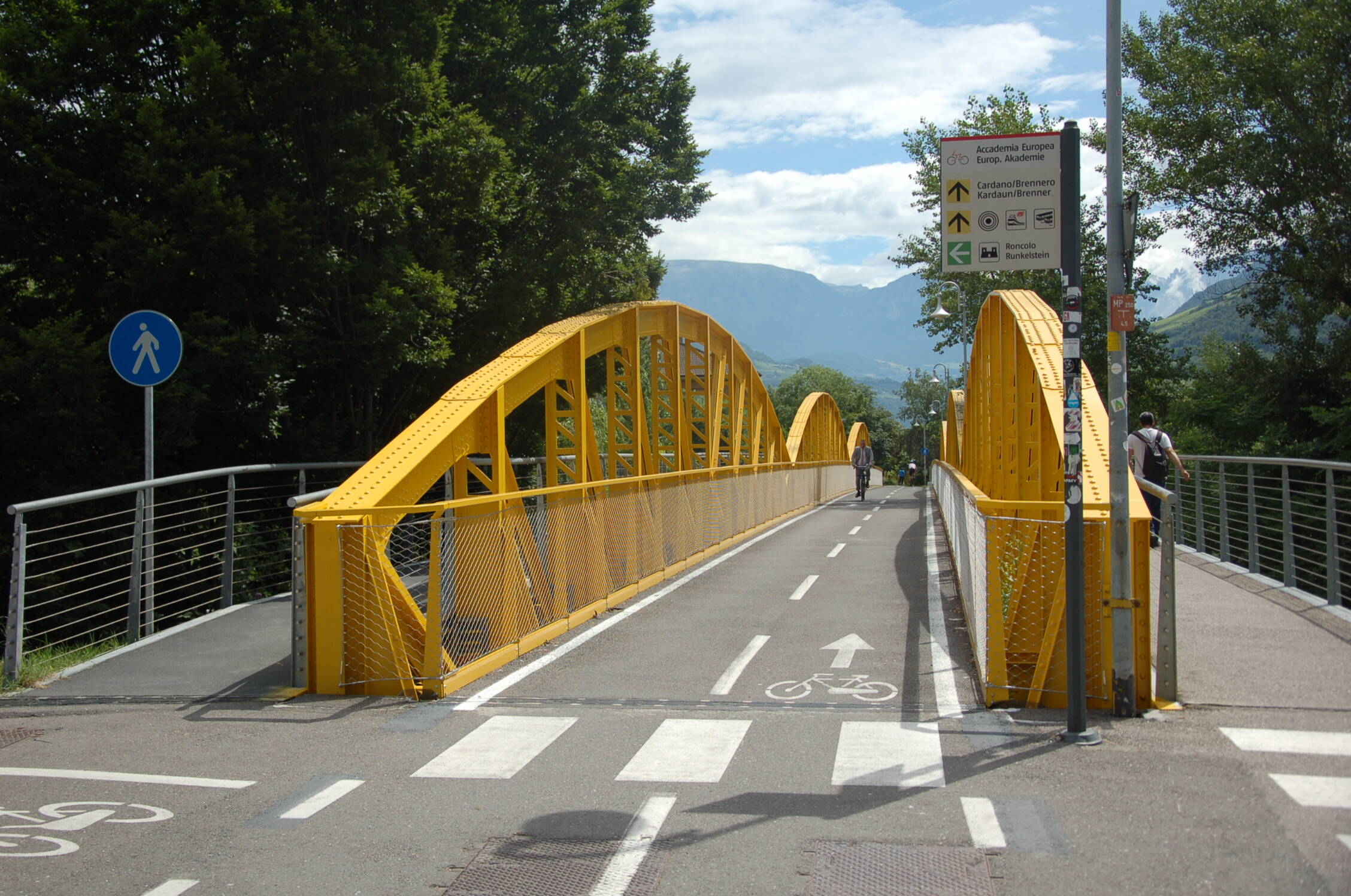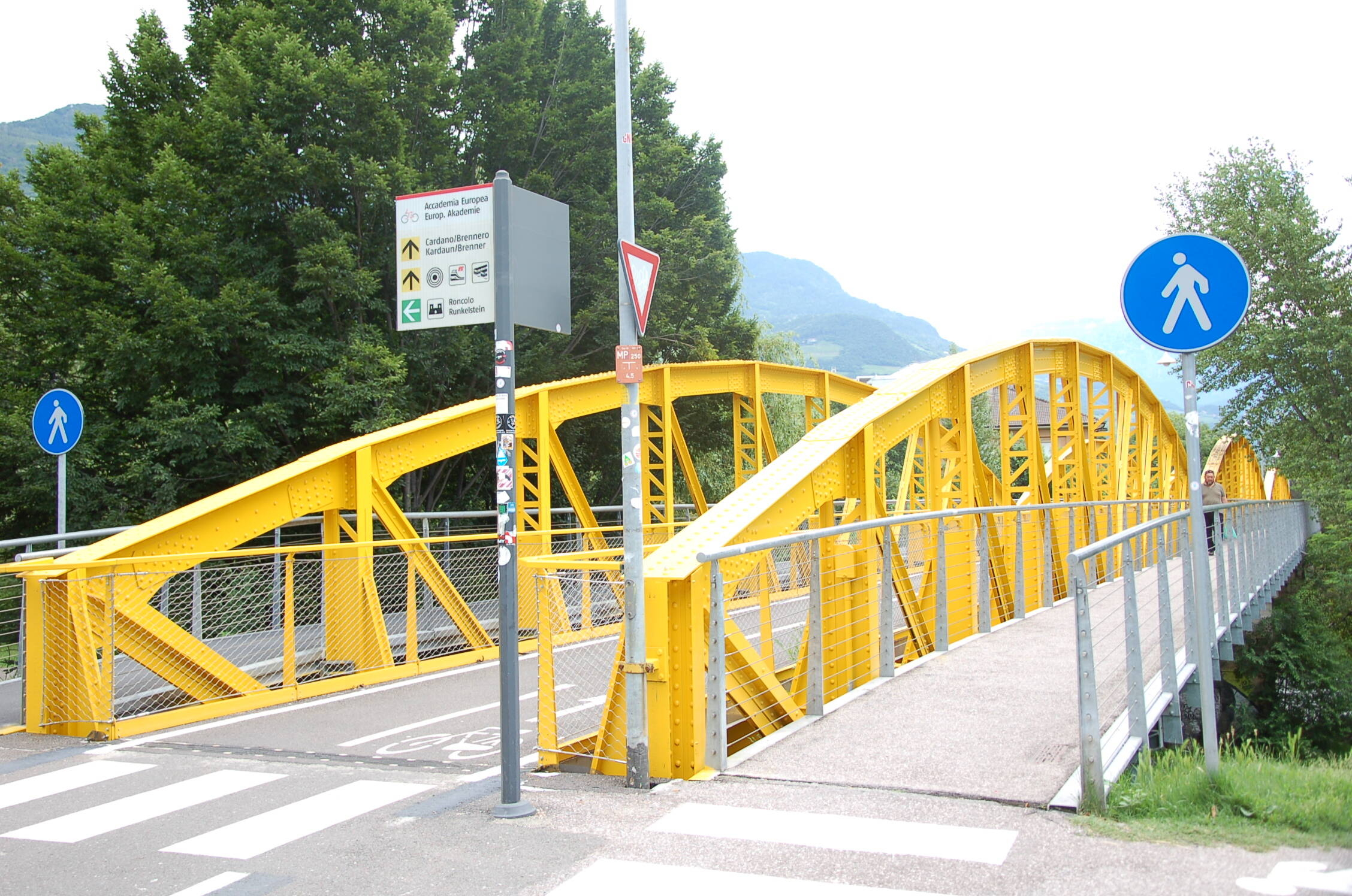 Sono terminati i lavori di manutenzione straordinaria del ponte pedociclabile sul Talvera; il cosiddetto "Ponte Giallo" (ex FS). Si tratta del vecchio ponte ferroviario della linea che portava a Caldaro trasformato in percorso ciclopedonale. Al ponte infatti sono state aggiunte in passato anche le strutture a sbalzo del marciapiede. Ultimi in ordine di tempo i lavori di demo-ricostruzione della soletta centrale e la riverniciatura di giallo delle storiche superfici metalliche. Al fine di presentare l'esito dell'intervento, il Vice Sindaco e Assessore ai Lavori Pubblici del Comune di Bolzano Stephan Konder ha promosso stamane con i tecnici comunali competenti (Sergio Berantelli e Patrick Soraruf) una conferenza stampa/sopralluogo sul posto.