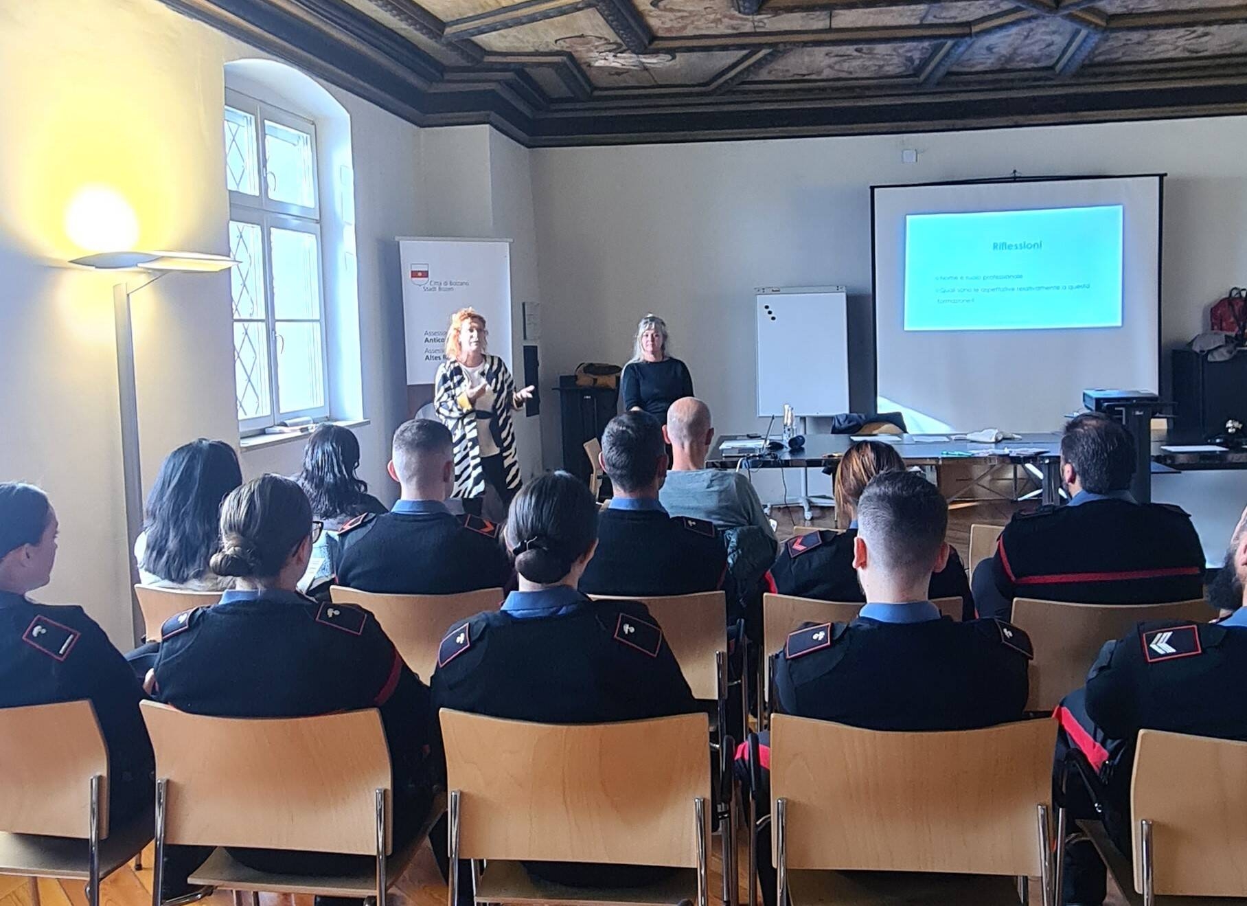 La formazione, per approfondire aspetti teorici e metodologie di intervento basandosi su un approccio multidisciplinare, è stata tenuta da due operatrici del Centro antiviolenza GEA di Bolzano che vantano ormai una esperienza consolidata nella formazione di servizi specialistici. Vi hanno partecipato rappresentanti di Polizia e Carabinieri di diverse sezioni di intervento (Squadra Mobile, Polizia Postale, Divisione Anticrimine, Radiomobile, ecc.).