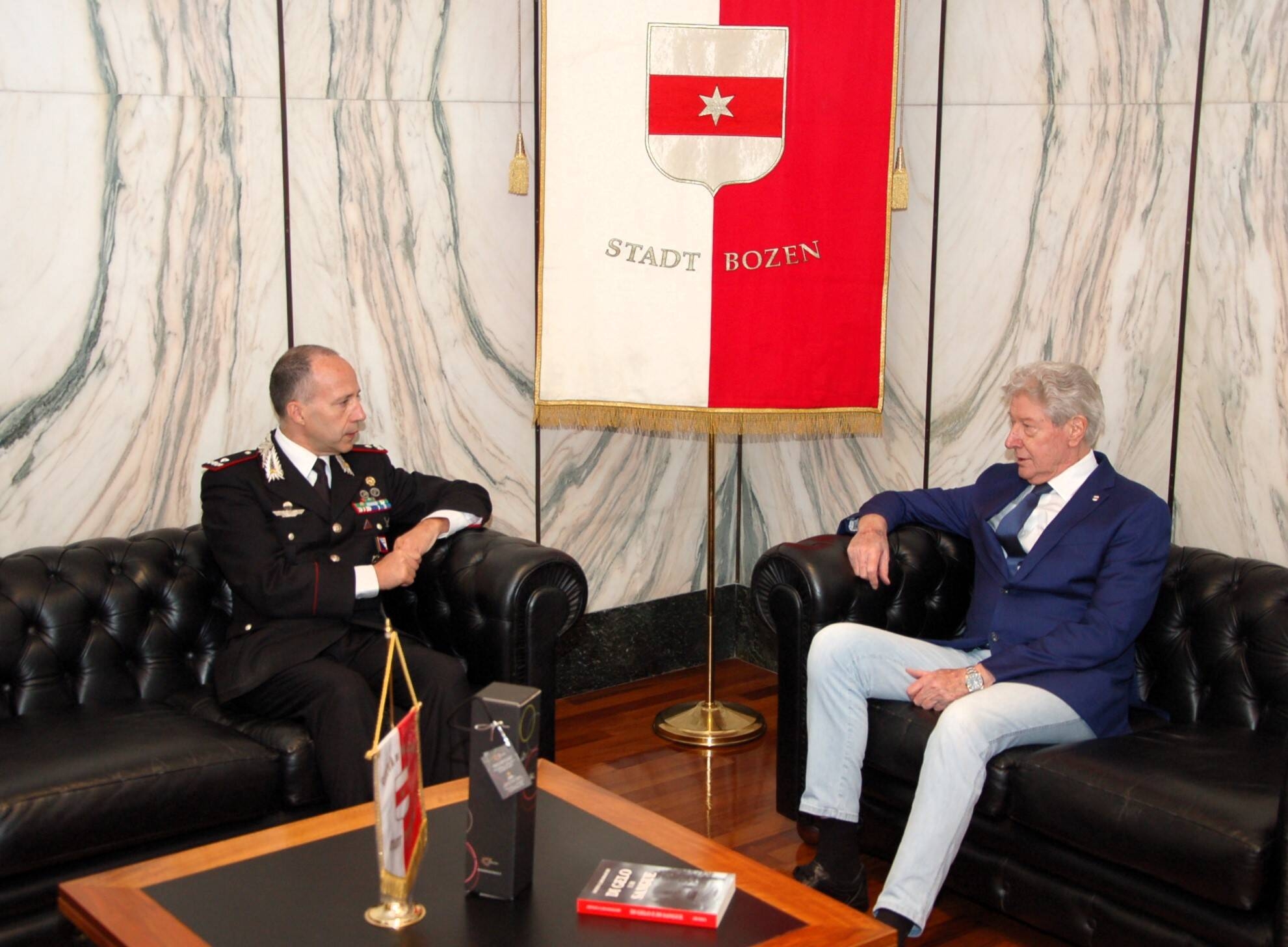 Il Sindaco di Bolzano Renzo Caramaschi ha ricevuto in municipio in visita di commiato il Generale di Brigata Roberto Riccardi che stamane ha formalmente ceduto il Comando della Legione Carabinieri Trentino Alto Adige al Generale di Brigata Stefano Paolucci. Un incontro molto cordiale quello andato in scena in municipio nel corso del quale il primo cittadino ha voluto, a nome dell'intera comunità, ringraziare Riccardi per il grande impegno profuso alla guida dei Carabinieri della regione. Il Generale ha ringraziato il Sindaco e la Città di Bolzano per l'accoglienza e per la collaborazione ricevute, confermando che da parte del Comando dell'Arma non verrà mai meno la disponibilità a proseguire con l'amministrazione cittadina in quel proficuo e costruttivo rapporto di collaborazione consolidatosi nel corso degli anni.