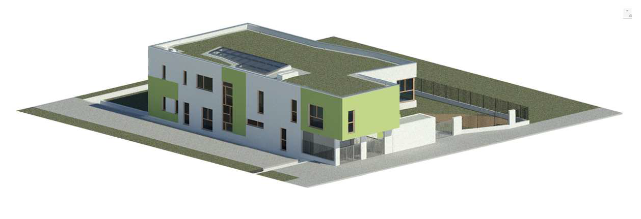 Il progetto prevede la realizzazione di una scuola materna per due sezioni.